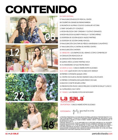 La Sala Marca Registrada es una revista catorcenal editada y publicada por Publicidad Segmento A S.C. Tiraje 10,000 ejemplares / Frontera 201-3 Campestre CP20100 Aguascalientes, Ags.Informes y ventas de espacios oficina: 1467220 y 21 Nextel: 4412694 / 1223926 / 1228127 / Edición doscientos siete / 17 de julio de dos mil catorce. Publicidad Segmento A S.C. no se responsabiliza por la información publicada por sus anunciantes, incluyendo sus promociones, imágenes y cualquier otra cifra, estadística o certificación que ostenten. Publicidad Segmento A S.C. no se identifica con el criterio ni se hace responsable de la opinión e información expresada por sus lectores y colaboradores en cualquier artículo o sección de La Sala. Queda prohibido la reproducción total o parcial del contenido de esta edición de La Sala, aún citando procedencia sin autorización expresa por escrito del director.