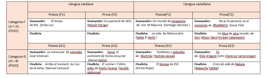 GUANYADORS I FINALISTES DEL PUNT DE LLIBRE "COMERÇ I ESCOLA” DE L’ESO