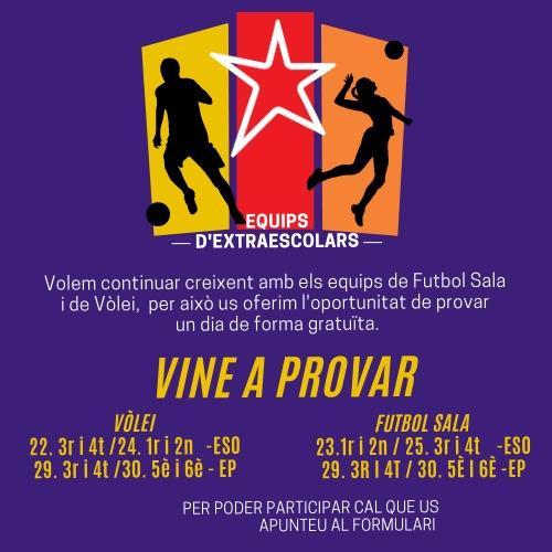 Vols provar si t’agrada el futbol o el vòlei de cara al proper curs? Vine!
