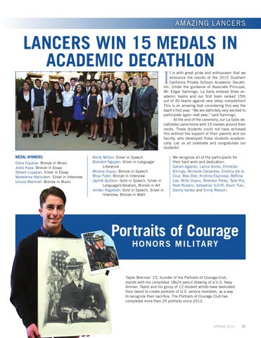 t is with great pride and enthusiasm that we announce the results of the 2015 Southern California Private Schools Academic Decathlon. Under the guidance of Associate Principal, Mr. Edgar Salmingo, La Salle entered three academic teams and our first team ranked 15th out of 40 teams against very steep competition! This is an amazing feat considering this was the team’s first year. “We are definitely very excited to participate again next year,” said Salmingo. At the end of the ceremony, our La Salle decathletes came home with 15 medals around their necks. These students could not have achieved this without the support of their parents and our faculty, who developed these students academically. Let us all celebrate and congratulate our students!
