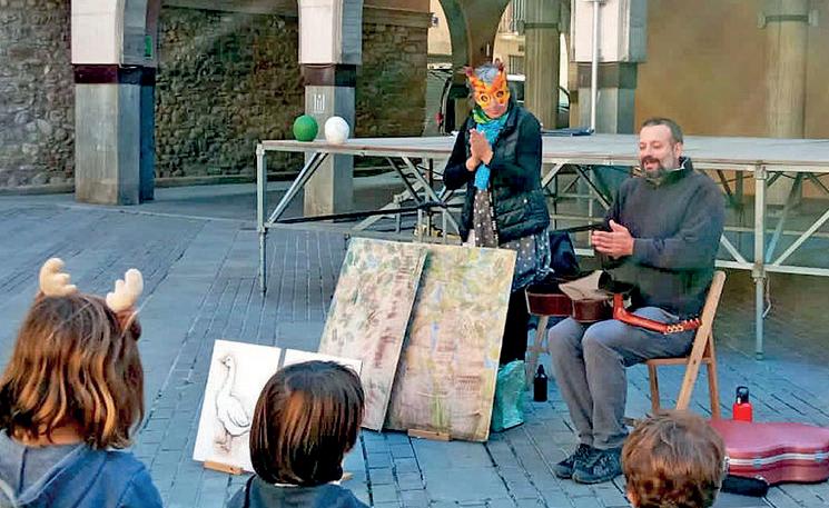 Els contes de Nadal són amb música i titelles amb personatges com el Tió Caganer, els Reis Mags, els Pastorets i els Dimonis Escuats. Cada participant farà una postal de Nadal amb les tècniques del collage i l’estampació, amb retoladors, ceres, llàpissos, tampons, tintes de colors, sobre papers i tela.