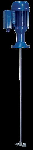 Mixers with 0.12 kW single phase electric motors, either slow (200 rpm) or fast (1,400 rpm), flange attachment, shaft and propeller in PVC.