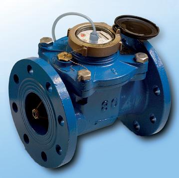 Woltmann series water meters with dry dial reading and pulse sender. Suitable for cold water up to 30°C.