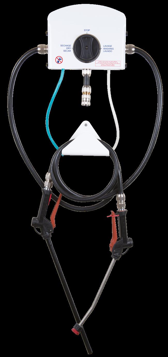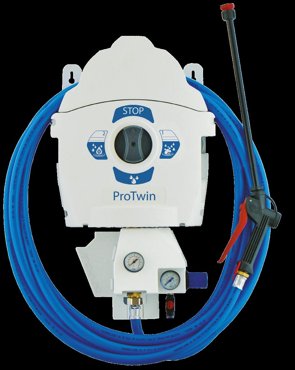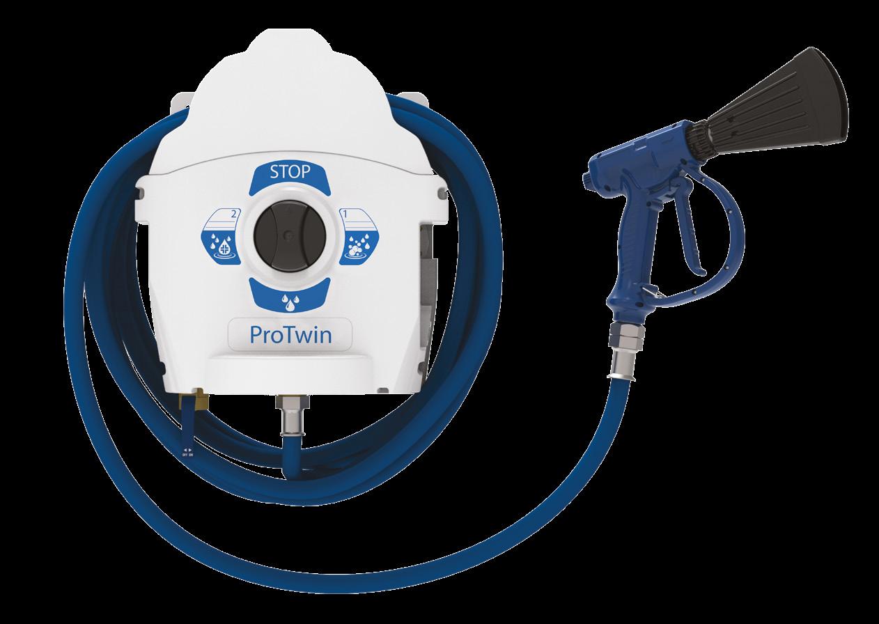 ProDual is a two-product spray system designed to apply pre-wash and rinse aid shampoo or detergents on cars, trucks and other vehicles. The system optimises water and product consumption, helping to reduce operating costs.
