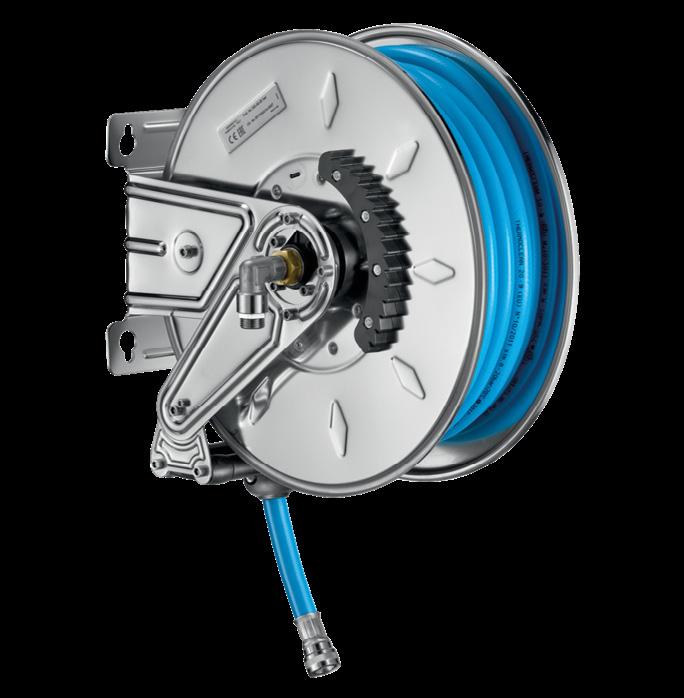The hose is made from high-quality industrial-grade materials, featuring a triple layer for added protection. An internal layer is reinforced with polyester for extended lifespan while the outer coating is made of supple PVC for additional flexibility. The system is connected directly to the water supply and helps reduce maintenance costs courtesy of quick and tool-free replacement of consumable parts such as injectors or valves.