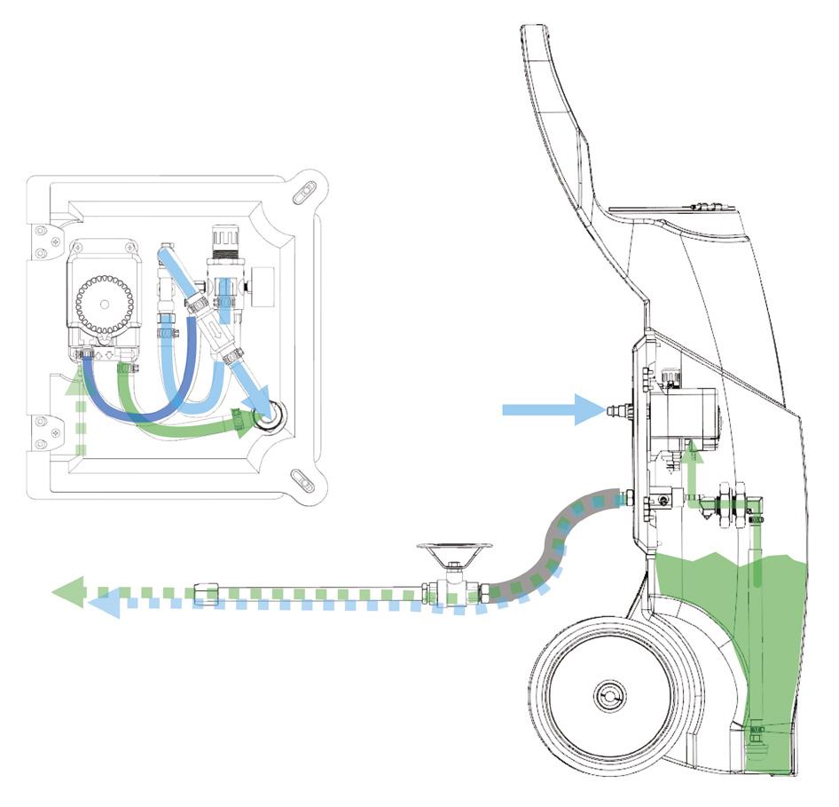 ProDual is connected directly to the water supply and offers reduced maintenance costs thanks to the quick and tool-free replacement of consumable parts such as venturi or valves.