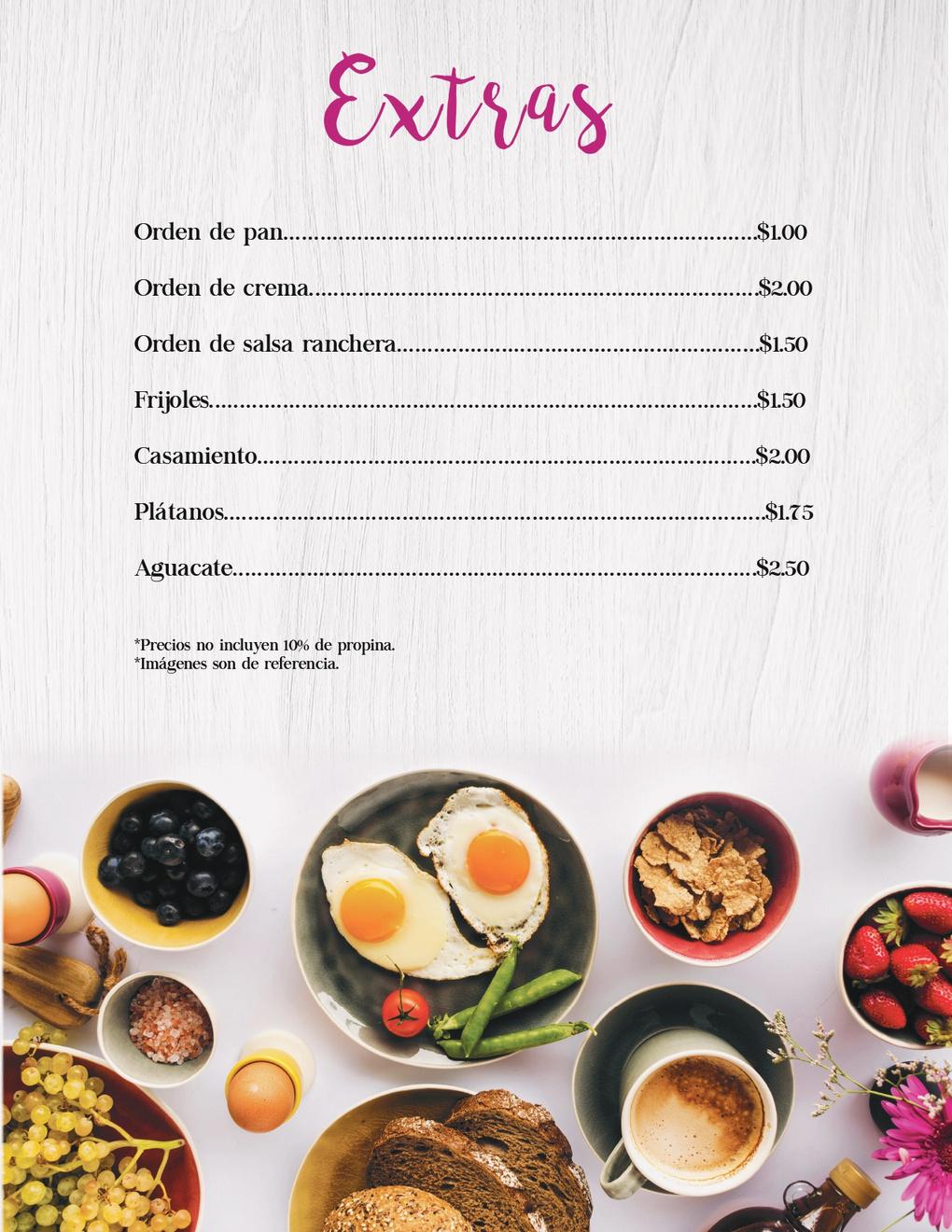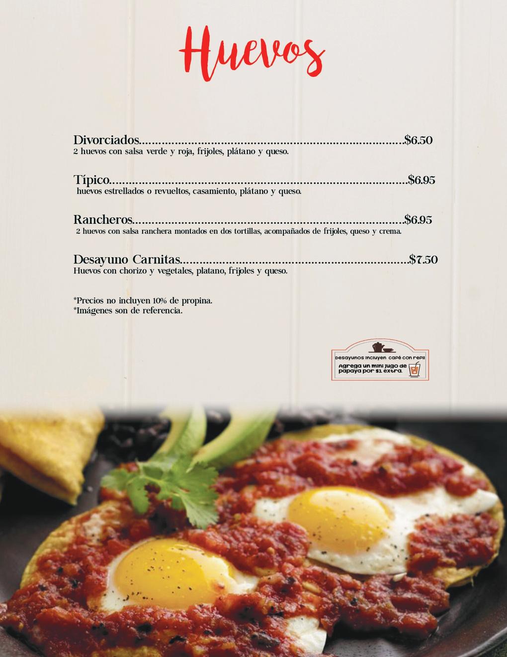 Desayunosincluyencaféconrefill Agregaunminijugode papayapor$125extra