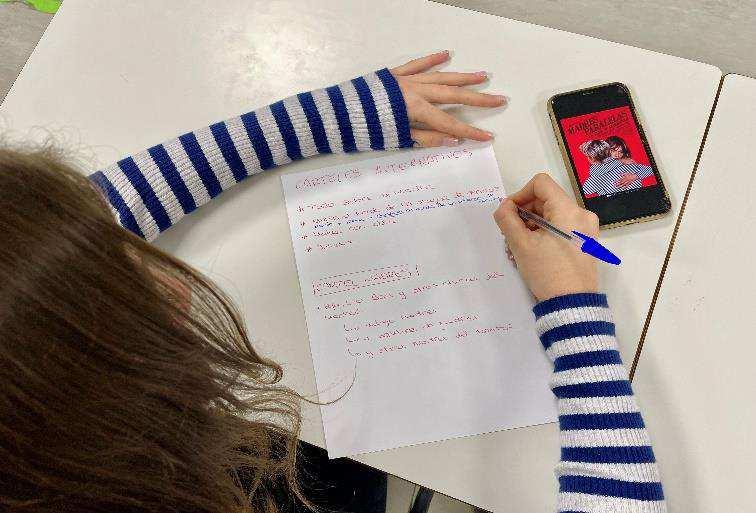Les preguntamos qué es lo que más les gusta del instituto y qué cambiarían en él. A Ana le gusta mucho la transparencia del centro y, quizás, cambiaría algunas de las instalaciones del edificio, que está algo anticuado. Para Eva, lo mejor son todos los proyectos que hay, por ejemplo Gen Pals o el Erasmus+… Y cambiaría, sin duda, que hubiera papelenlosbaños.