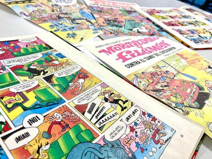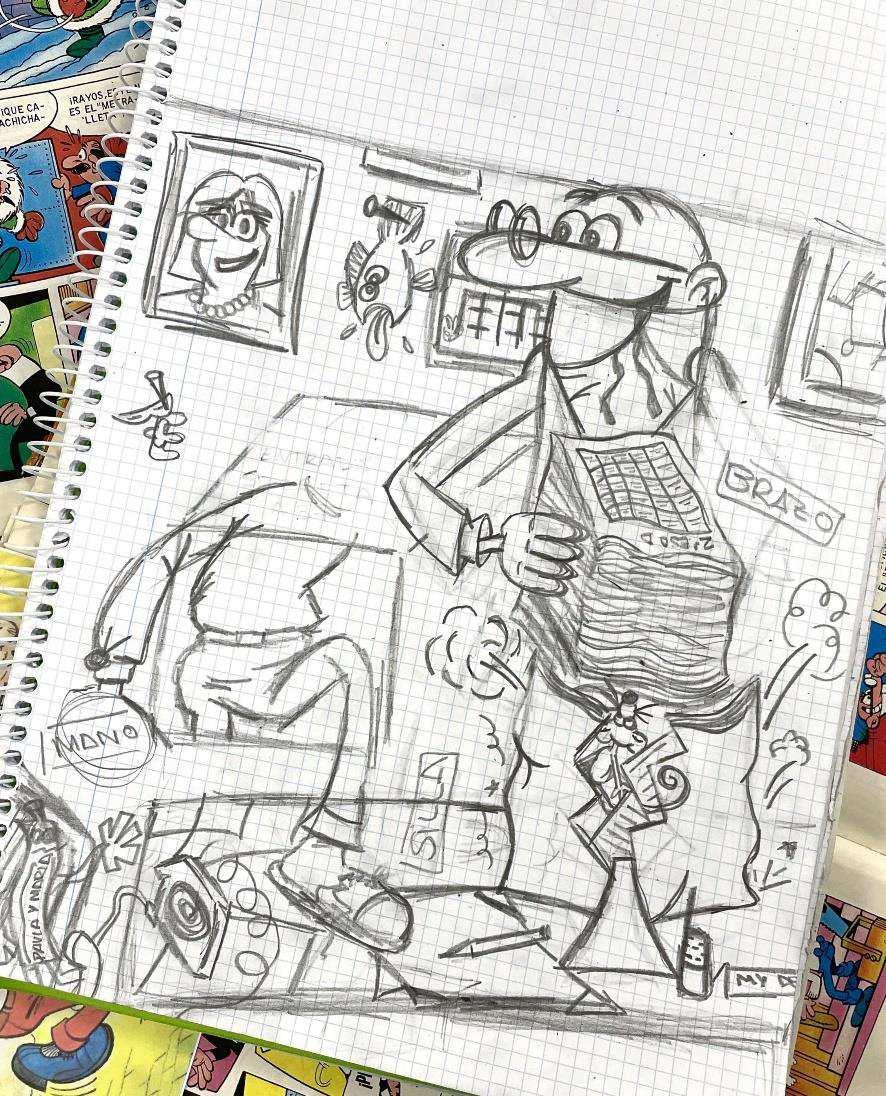 MARÍA: Te está saliendo genial la viñeta, por cierto. Está todo muy caótico, pero para bien, claro, comosonloscómicsdeMortadelo yFilemón.