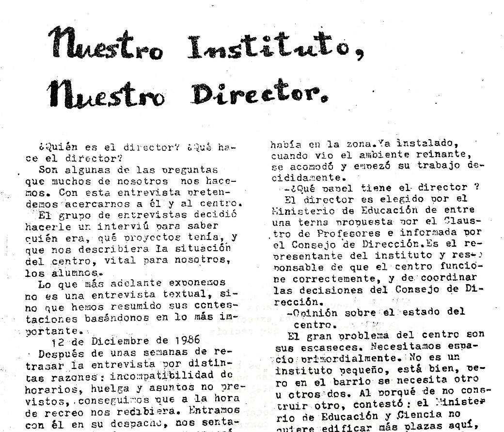 Llenaremos nuestro centro de espacios y contextos para indagar, descubrir, crear, cooperar… aprovechad todas las oportunidades que os vamos a presentar. Y queremos hacerlo entre todos. Porque sería ideal que, como hasta ahora, una de las señas de identidad de nuestro instituto siga la participación de todos. Porque apartedeledificioensí,ubicado en Casalarreina 28, tenemos otro edificio simbólico que se eleva por medio de esfuerzos e ilusiones colectivos, los de todos,yquecadaañoseempieza atrazarenelmesdeseptiembre yconcluyeenjunio.