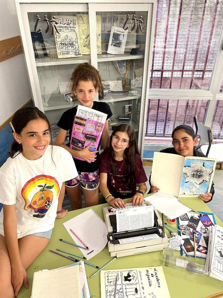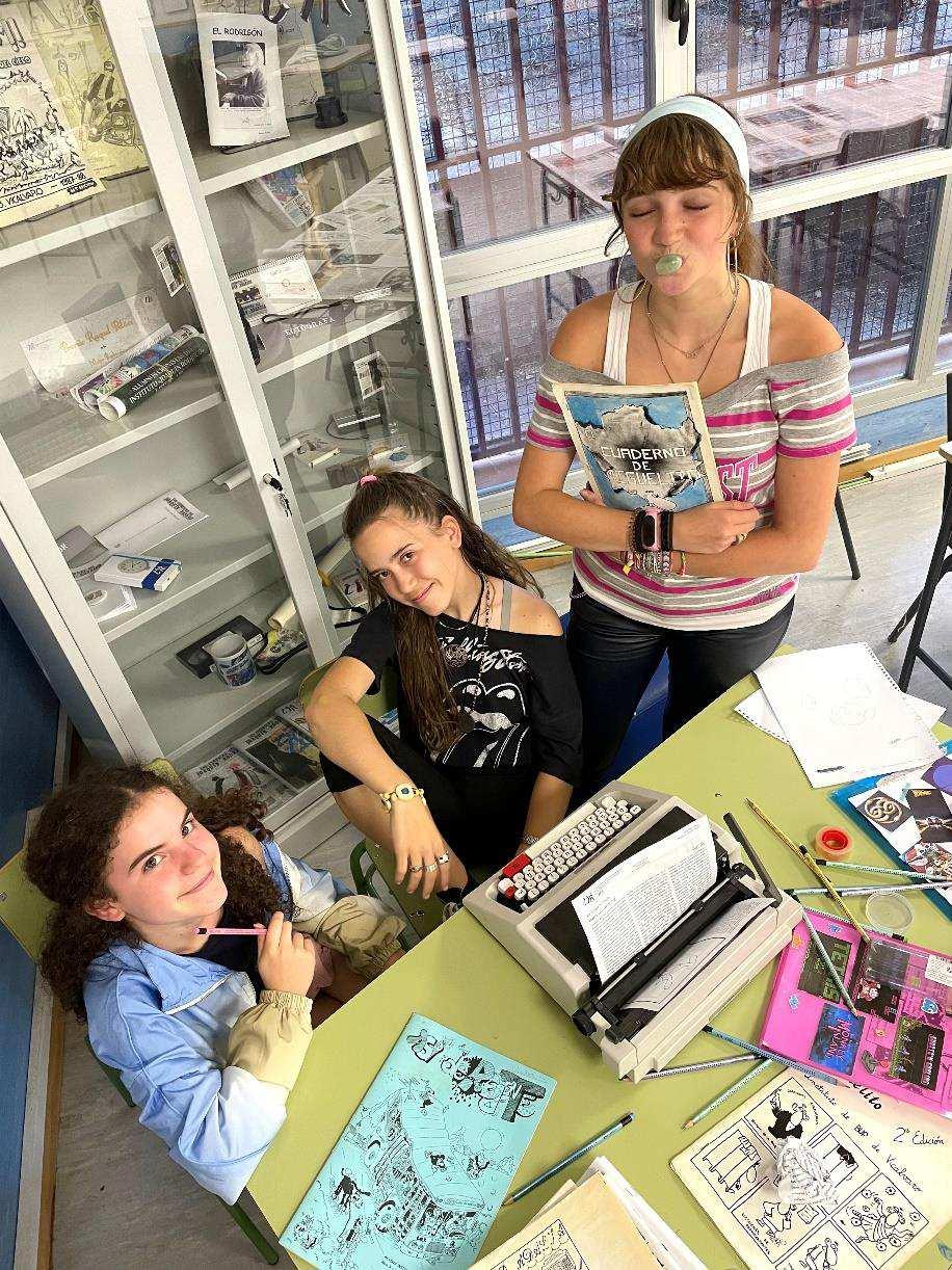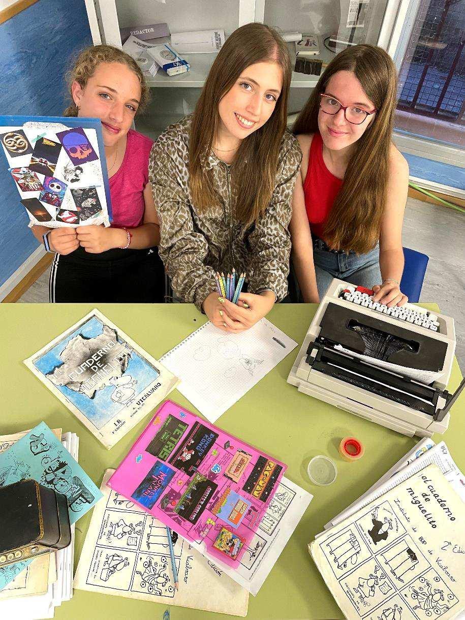 Y las tres entraron juntas al instituto con una sensación extraña.Unamezcladelmareoqueles había causado el viaje en el tiempo y ser desconocidas en un sitio que conocían tan bien. Nada más entrar vieron al conserje que les paró preguntándoles dónde iban. ¿Qué hacéis por aquí? Por las tardes no hay clase , les dijo Manolo. Veníamos a informarnos sobre El cuadernodeMiguelito.¿Sabedóndenospodemos apuntar? , preguntó Zoe. ¡Uy! Creo que al final no se va a hacer ese proyecto, porque todos los profesores encargados se están manifestando , les respondió el conserje. Vale, pues nada, muchasgracias,pero,¿sabesihabíaalgunaclase donde trabajaran en la revista? , preguntó Noa. Siempre estaban en la clase de Margarita, la profesora de Lengua. Me tengo que ir. Nos vemos por aquí , dijo Manolo mientras se alejaba.