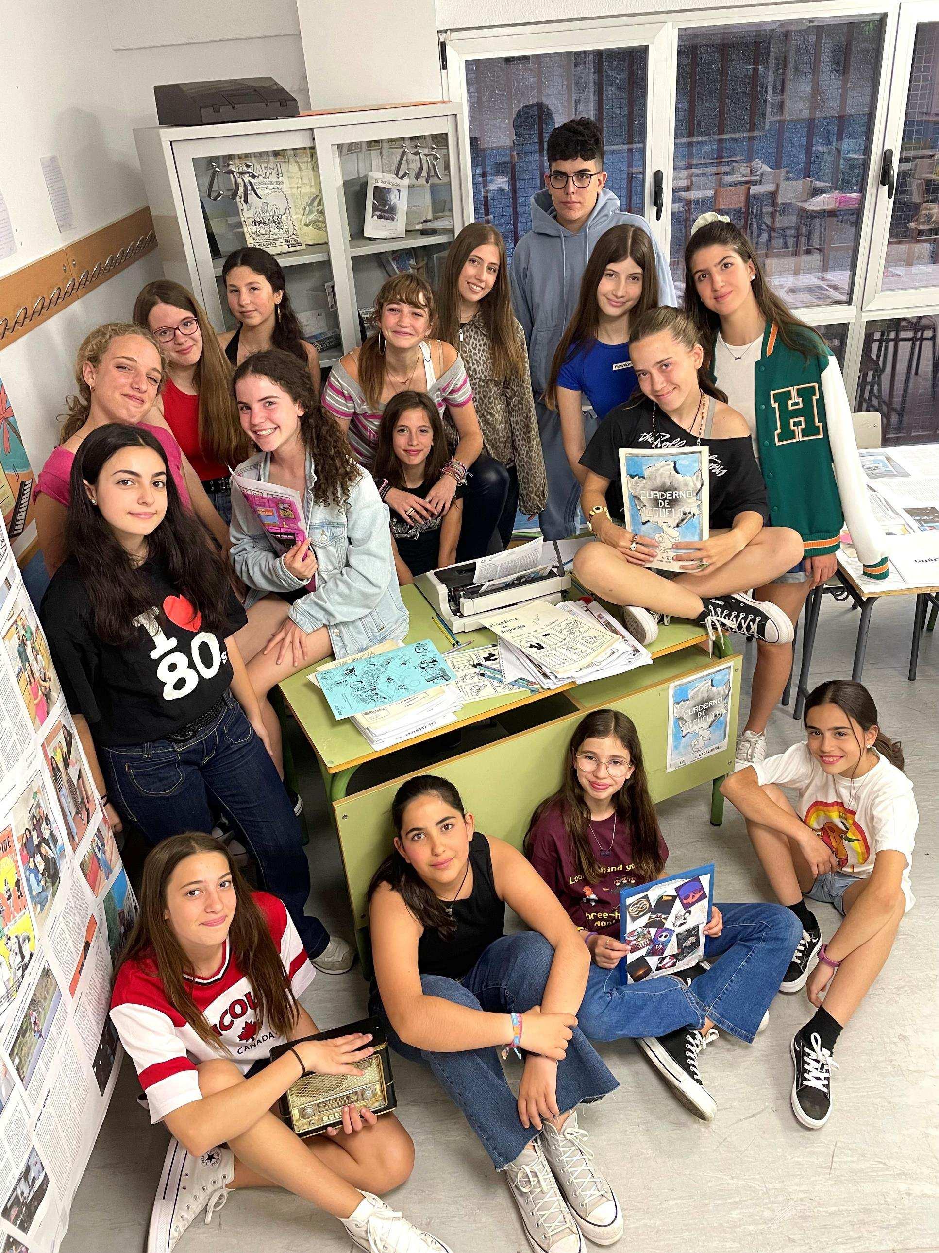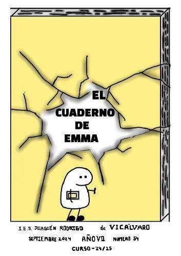 En la clase de Margarita todo el mundo estaba trabajando: ilustrando, escribiendo… Parecía que habían avanzado bastante. Aunque escribir con elestilodelaépocaerabastantecomplicado. Pasólatardeycasitodalarevistaestabaacabada. Pero quedaba lo más importante. El artículo central. No sabían de qué hablar. Llevaban horas pensando, pero la hoja seguía en blanco. Cuando losdemásartículosestuvieronacabadostodosse pusieron a pensar sobre qué podían escribir. Y así estuvieron toda la noche hasta que en mitad de la madrugada a alguien se le ocurrió una idea estupenda que fue la definitiva. Así que al amanecer se pusieron a imprimir todos los ejemplares y la mañana del 30 de septiembre de 1984ElCuadernodeMiguelitoestabaenmanosde todos los profesores y alumnos del instituto. Después de haber triunfado todos los miembros de la redacción de CJR volvieron al futuro contentos de haber completado la misión.