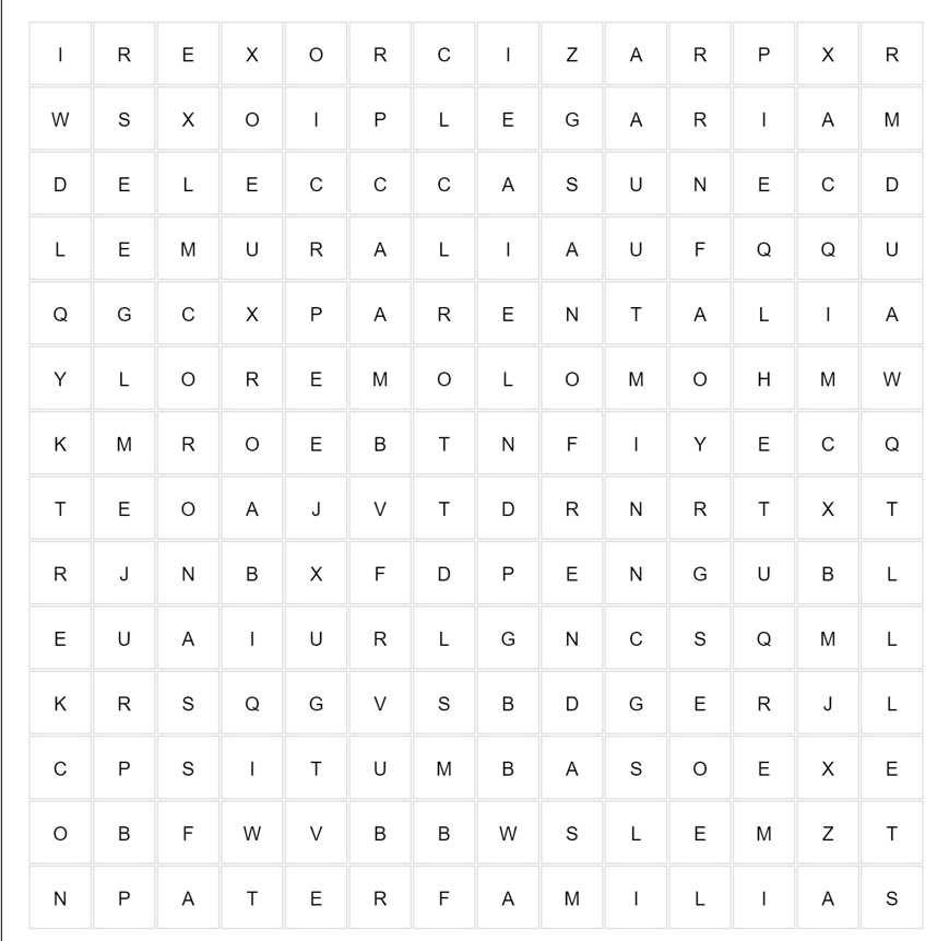 Durante las noches de las Lemuralia, según detalla Ovidio en su obra Fastos, el paterfamilias(o cabeza de familia) se levantaba a media noche y caminaba descalzo por la casa a oscuras y sin mirar hacia atrás y con el pulgar de cada mano entre los dedos índice y corazón para alejar el mal. Posteriormente, purificaba sus manos y arrojaba a sus espaldas una judías negras para que los lemures se apaciguaran recogiéndolas. Mientras arrojaba las judías, pronunciaba 9 veces esta plegaria: Haecegomitto; hisredimomequemeosquefabis(te ofrezco estas judías, con ellas me redimo a mí y a los míos) , tras ello, volvía a lavarse para purificarse las manos y hacía sonar unos objetos de bronce (como una breve cacerolada) con la que se aseguraba de que todos los espíritus salían del hogar. Y ahora, en el LUDUS o PASATIEMPO, encuentra las palabras subrayadas en el texto en la sopa de letras.