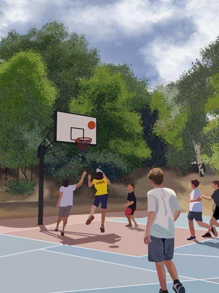 Mientras tanto, dentro del recinto, Esther y Álvaro se encaminan hacia las mesas de ping pong y la pista, respectivamente. Una vez allí, Álvaro desenvuelve velozmente su bocata, generalmente de tortilla o de salami, ingiriéndolo con avidez, al tiempo que juega al fútbol con sus amigos. Esther, por su parte, apoyada en las mesas de ping pong, charla sobre las últimasclases, los exámenes y los profesores entre otros muchos temas, con sus compañeras, al tiempo que se toma su batido sin mucho apetito. De igual forma, está siempre atenta por si aparece un conejo, lista para perseguirlo si lo ve. Ambos coinciden en que el patio es enorme y les brinda mucha libertad, pero si pudieran salir fuera sin duda lo harían.
