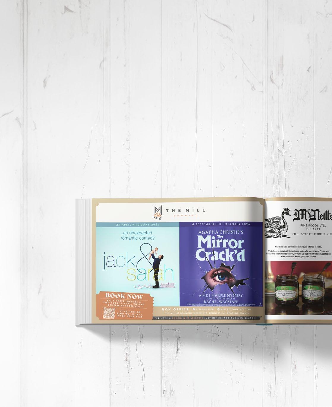 The Mill at Sonning has long enjoyed a close relationship with Wargrave Theatre, a respected local drama group performing for over fifty years. They stage around five shows a year, including open-air Shakespeare, awardwinning pantomimes, and a thriving youth section.