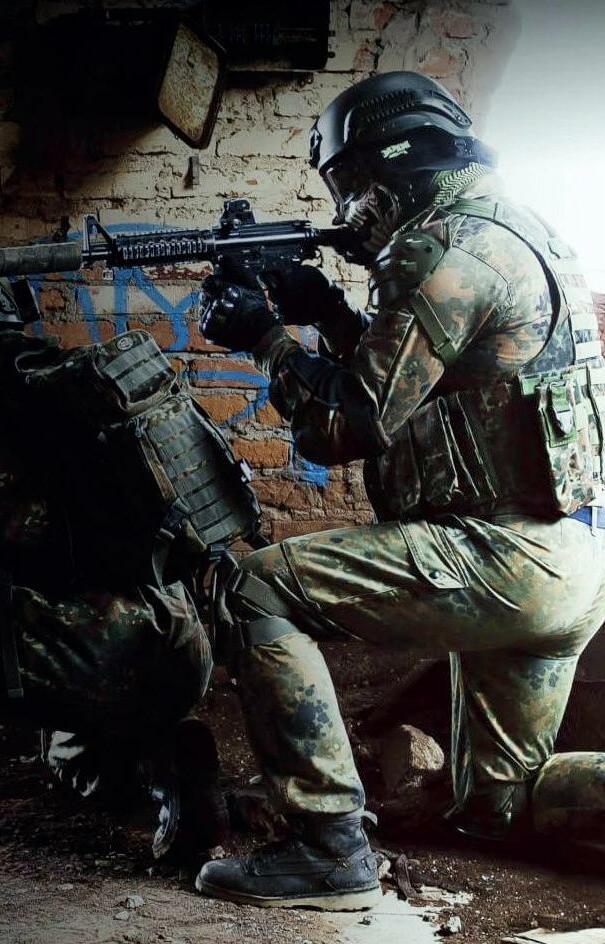 EQUIPAGGIAMENTO Il set armi è costituito da repliche fedeli di armi militari realizzate in policarbonato allo scopo di contenere il peso, assorbire agli urti e renderle maneggevoli. Le armi sono a raggi infrarossi resistenti alla luce solare. Un sistema integrato che simula il rinculo dell’arma ad ogni colpo ed un potente effetto sonoro garantiscono un ottimo realismo e grande coinvolgimento.