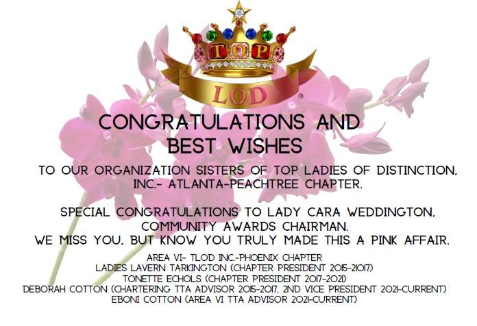 To the Atlanta Peachtree-Chapter: Congratulations on 12 years of Service to Youth & Adults