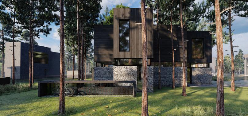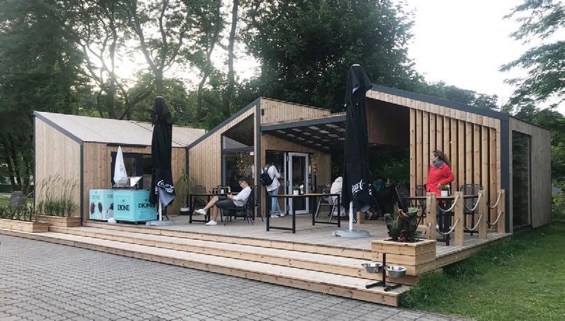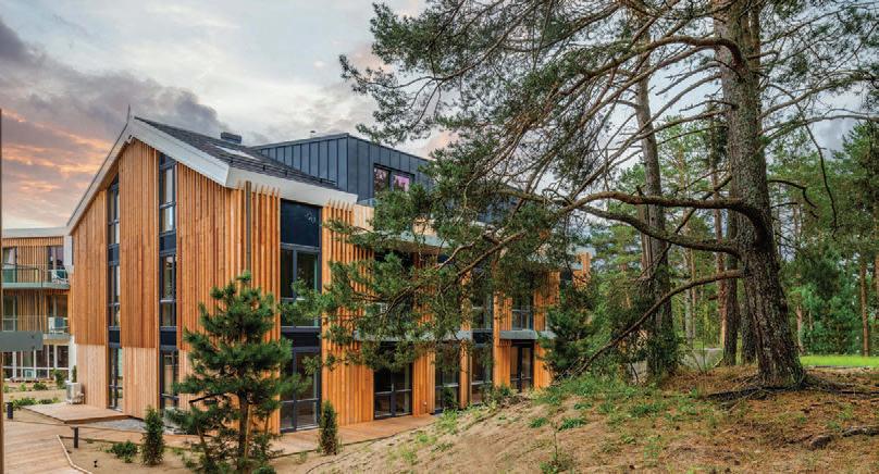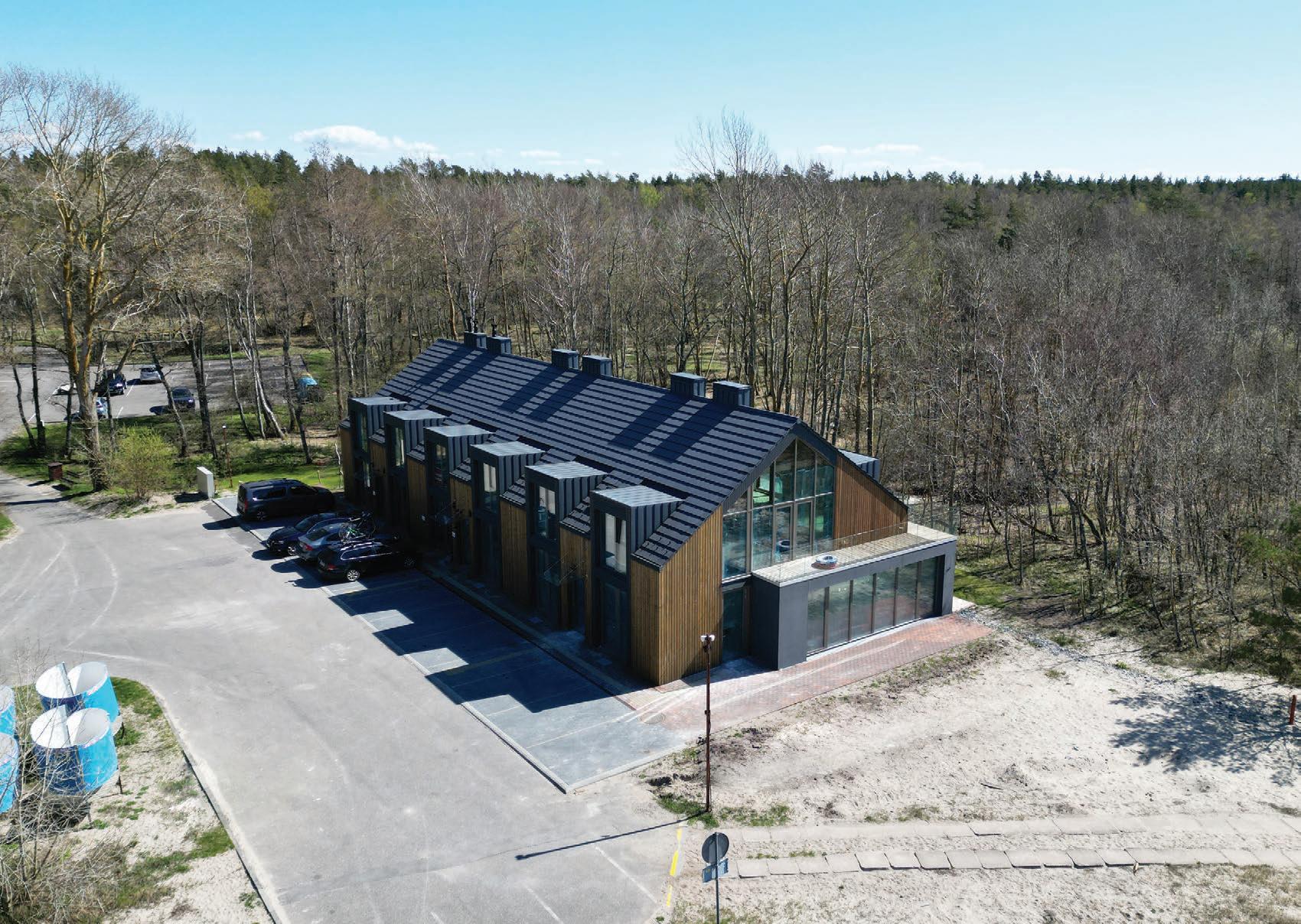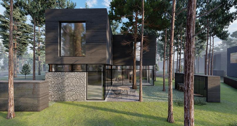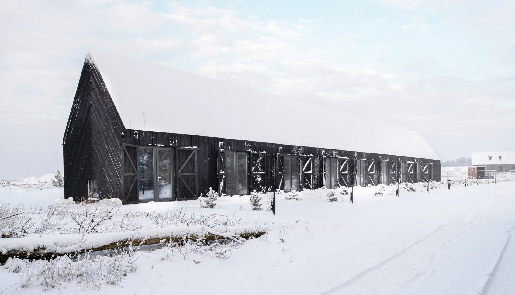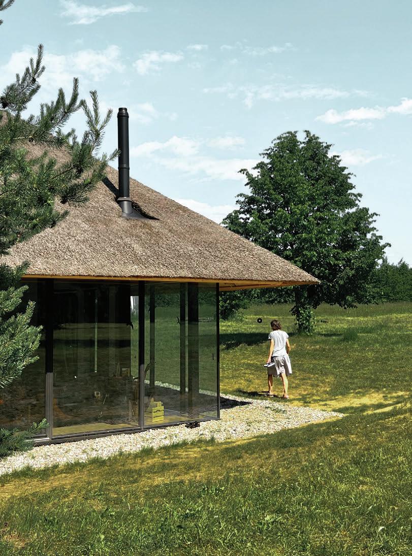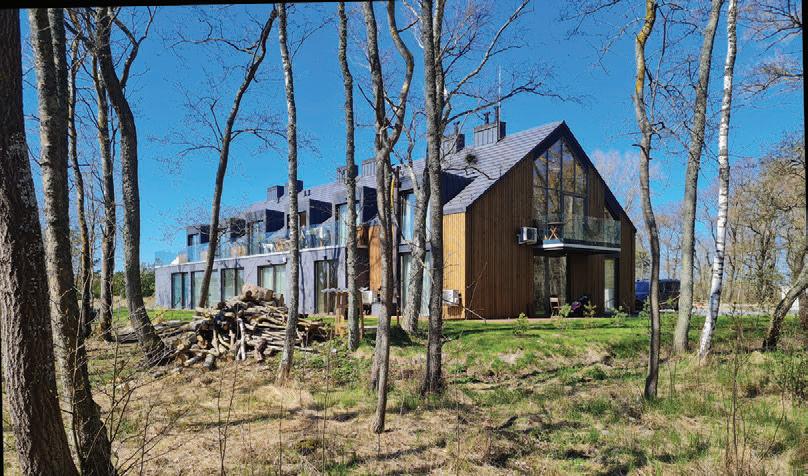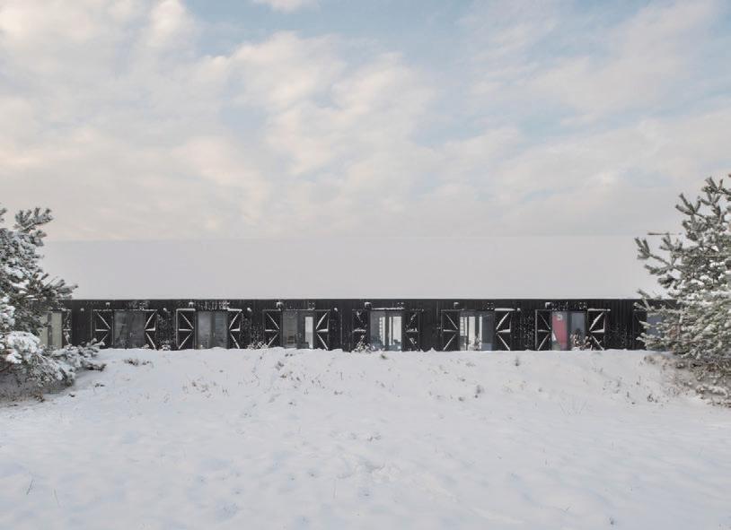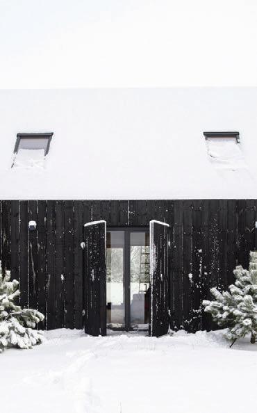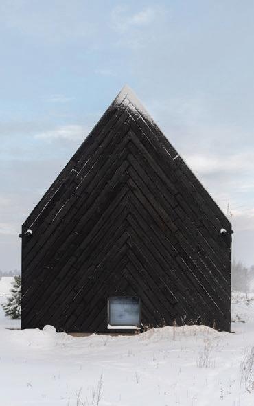 This is a unique project that hides intriguing stories. It is likely one of the first structures in Lithuania that utilised the old Japanese Shou Sugi Ban wood processing technique. When the sur face of the wood is burned, it becomes charcoal-like and protects the structure from external environmental factors.