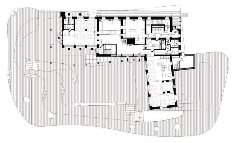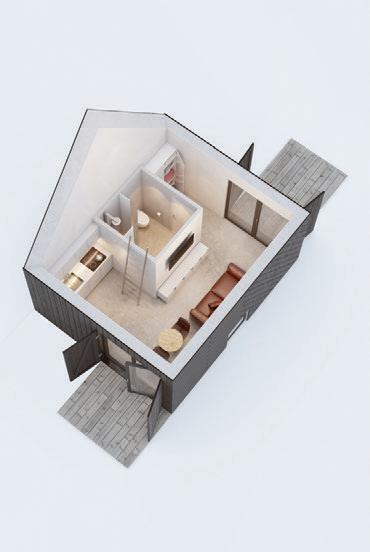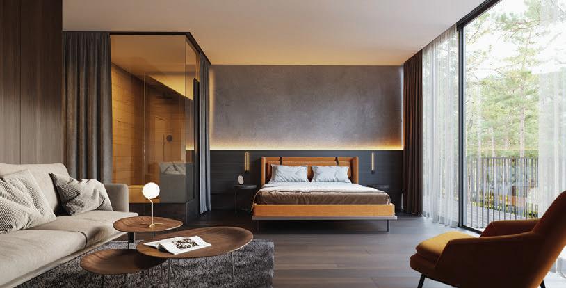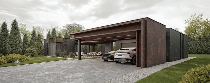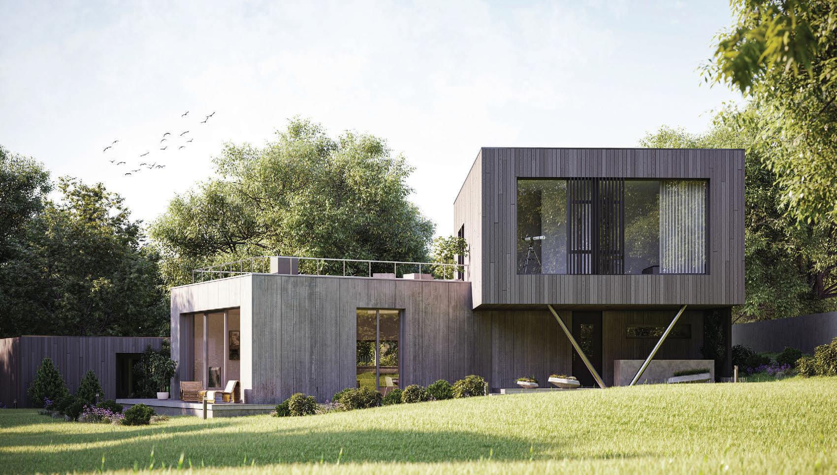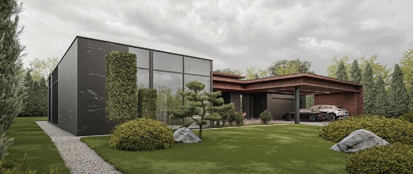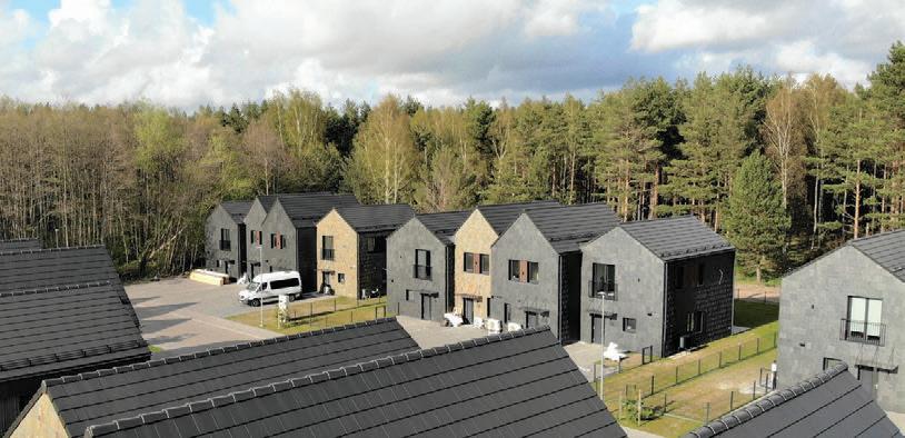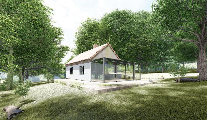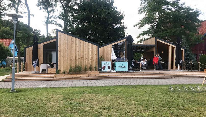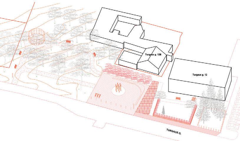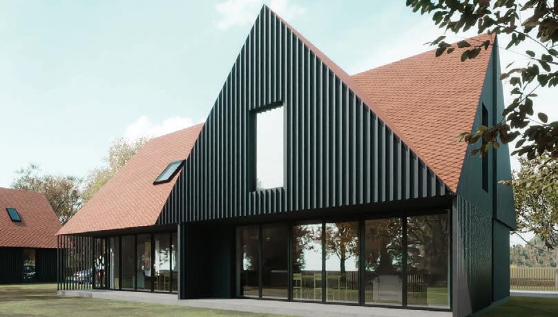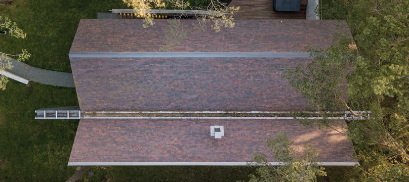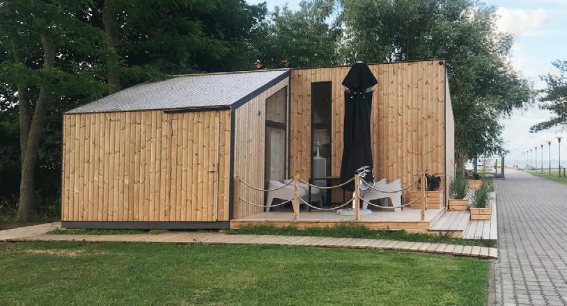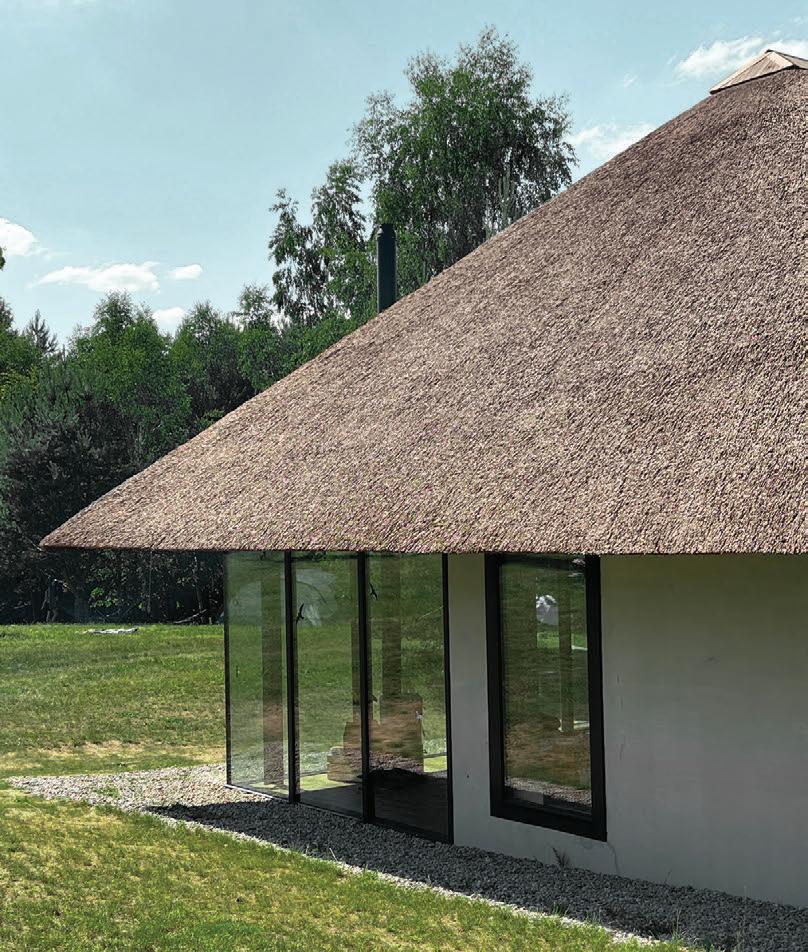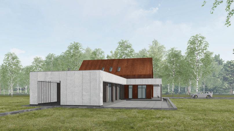 This is a unique project that hides intriguing stories. It is likely one of the first structures in Lithuania that utilised the old Japanese Shou Sugi Ban wood processing technique. When the sur face of the wood is burned, it becomes charcoal-like and protects the structure from external environmental factors.