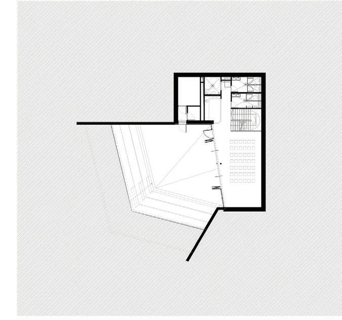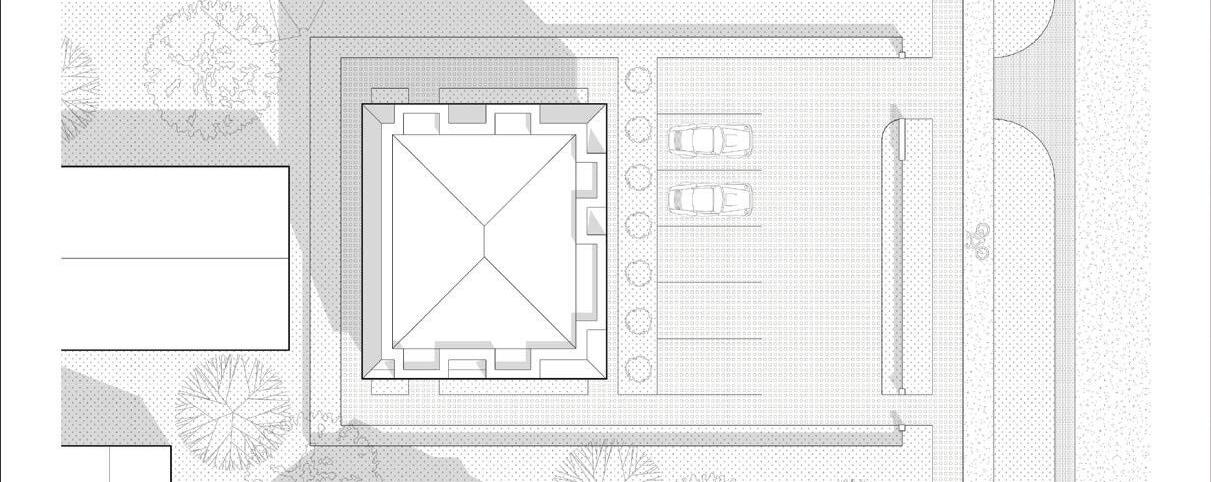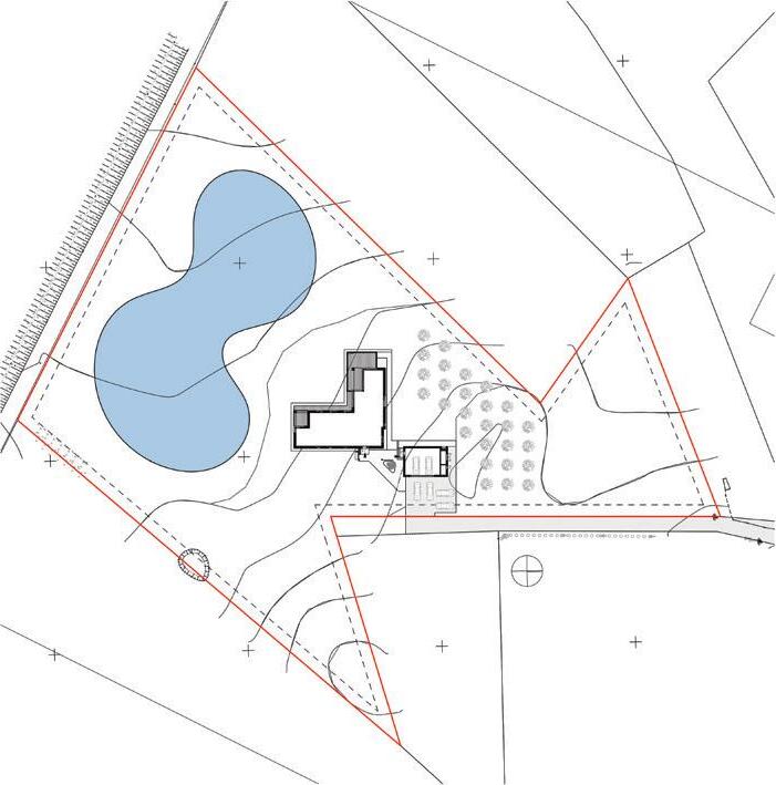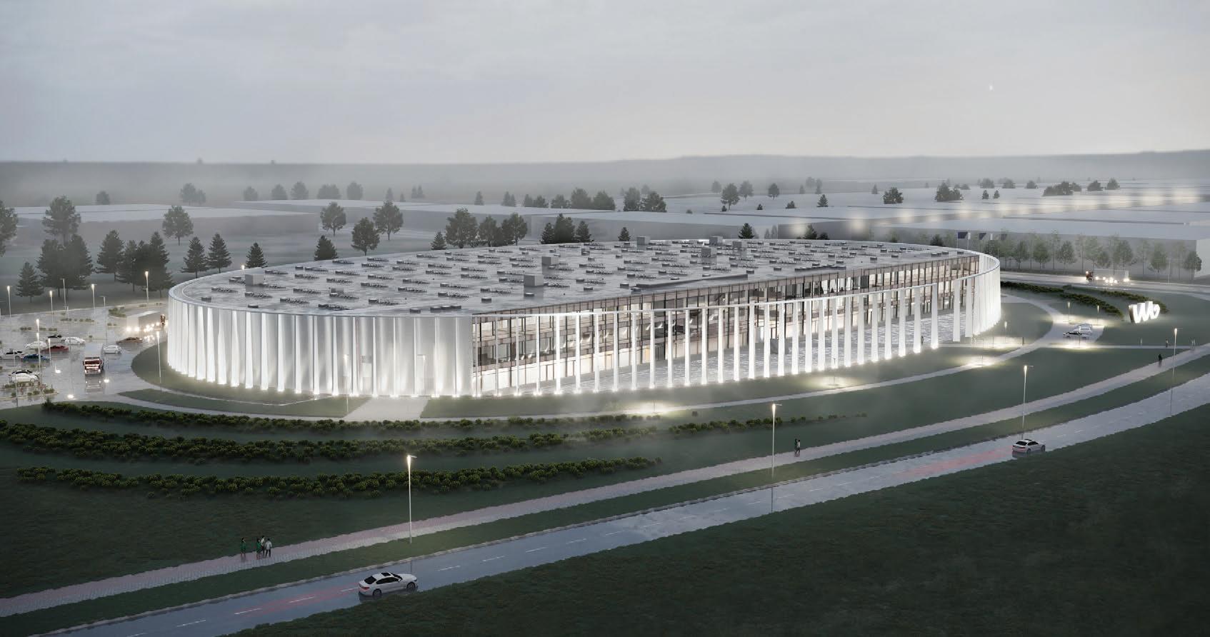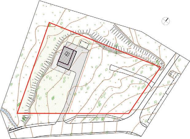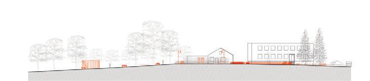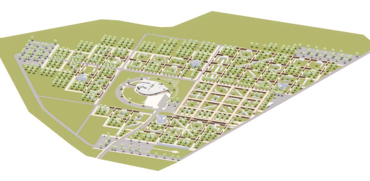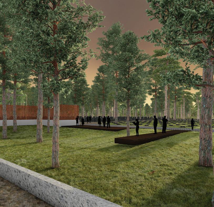 The crematorium is located on a flat sur face – in a field by the forest. The mass concept of the design is a rather sensitive manner –it represents a shallow hill rising from the sur face. The crematorium is designed with a metaphor of a burial mound covered with white linen. The volume of the building and its access spaces are separated by embankments of the surrounding landscape. The structure of the roof is reminiscent of a ritual blanket that covers the architectural volume and blends it into the surrounding ground. The crematorium building is visible from a distant perspective and becomes the epicentre of the ritual. It calmly invites and releases those who arrive. It is a place of emotional discharge and a quiet transformation subordinate to the eternal time and the experience of eternity.