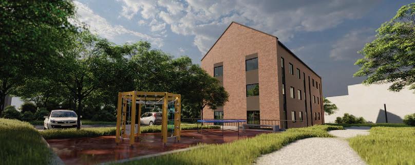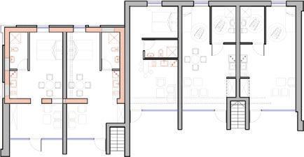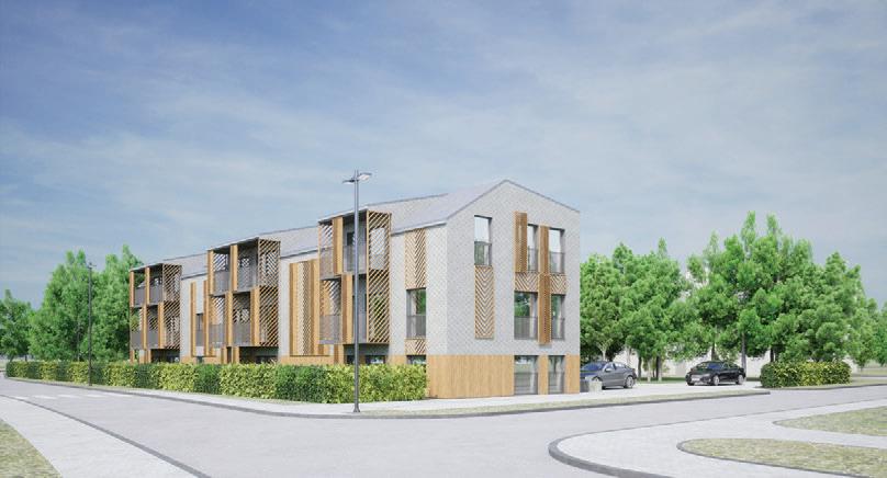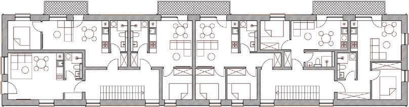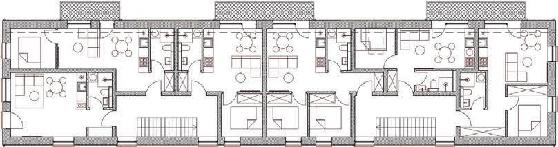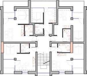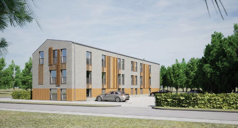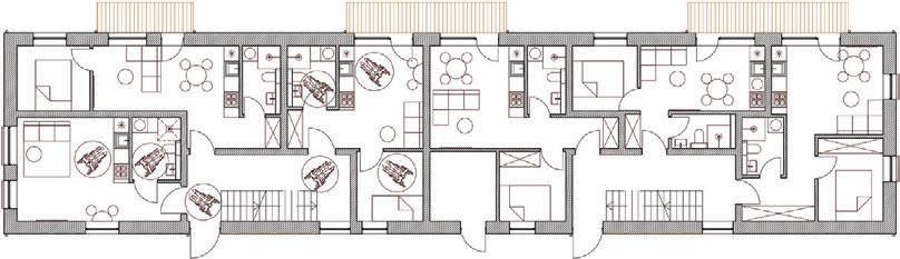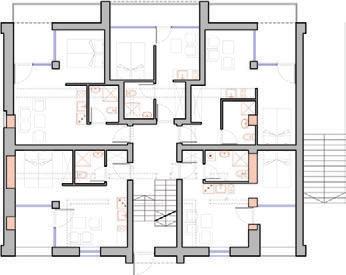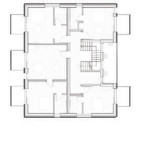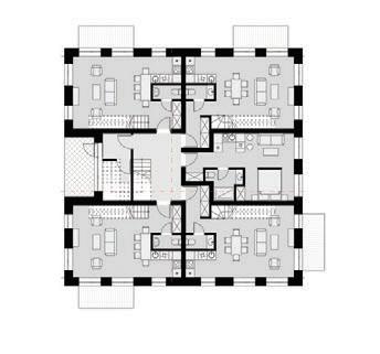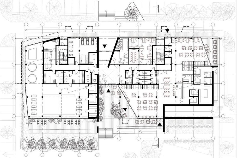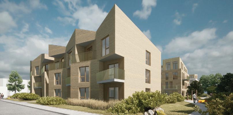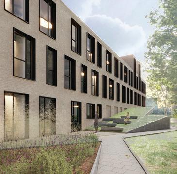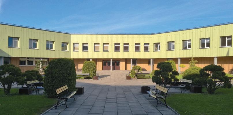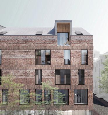 The plinth is insulated and decorated with dark grey clinker tiles. The main entrances of the building are made accessible for individuals with disabilities