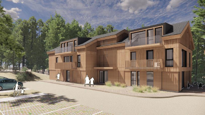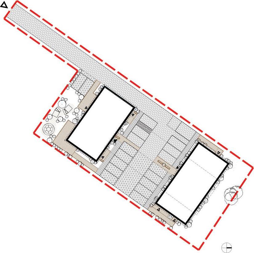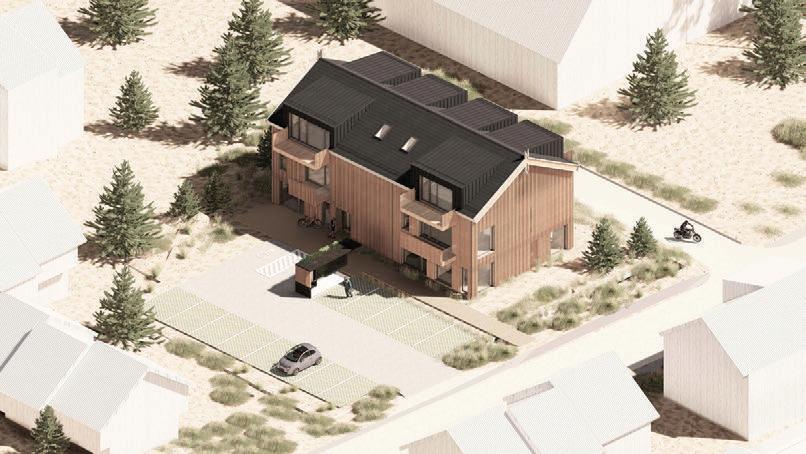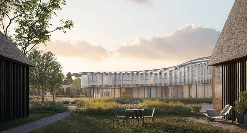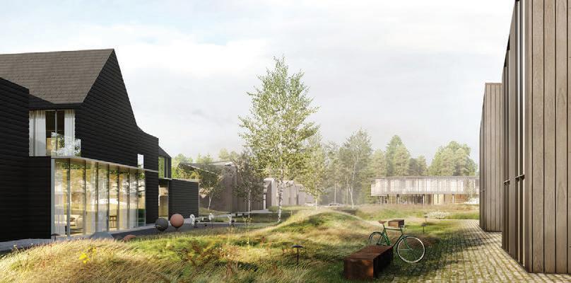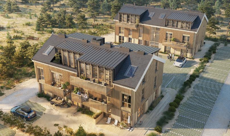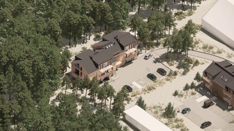 The aim was to create tranquillity in a Pur vynės Street, that is interrupted by variety of functions. The positioning of recreational buildings was carefully selected, considering the layout of the street and the surrounding forest, creating gaps between the structures that invite visitors into the courtyard while offering stunning views of the pine forest. The first row of buildings follows a more controlled design, while the second row is more loosely arranged, mimicking the natural line of a grove. Pitched roofs and wooden vertical elements of the facade are used as modern interpretations of traditional architecture in Neringa, incorporating elements that are characteristic of this region.