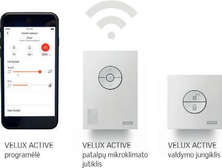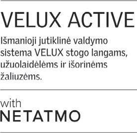 Sistema „VELUX ACTIVE with NETATMO“ sujungia dvi puikias technologijas: aukštos kokybės stogo langus VELUX ir NETATMO patirtį, kuriant paprastus bei naudingus produktus ir programėles. Automatizuojant stogo langų atidarymą, uždar ymą bei uždengimą užuolaidėlėmis, galima smarkiai pakeisti situaciją ir patalpų mikroklimatą pagerinti taip, kad naudotojams nereikėtų sukti dėl to sau galvos. Sukūrėme jutikliais paremtą sprendimą, kuris yra ne tik patikimas ir paprastai naudojamas, bet ir prisideda prie geros naudotojų savijautos. Sveikata ir gera savijauta išmaniuosiuose namuose