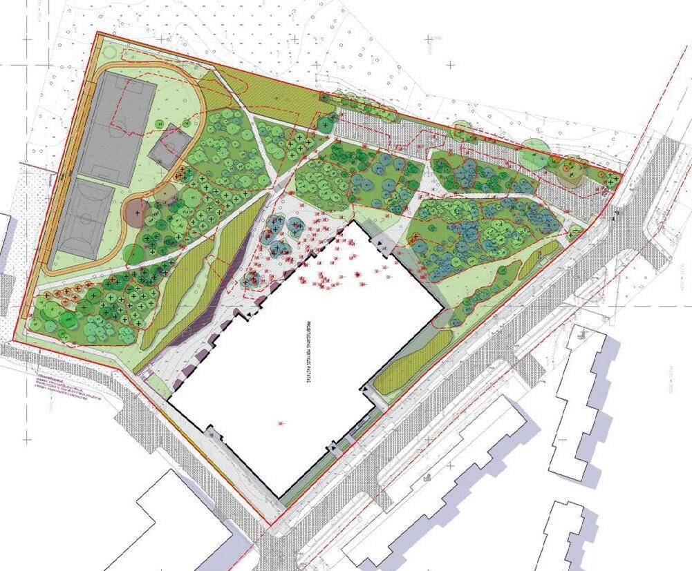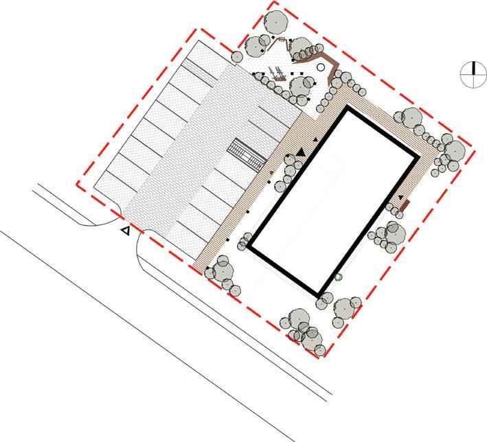 Cokolis šiltinamas ir aptaisomas tamsiai pilkomis klinkerio plytelėmis. Aplink pastatą įrengiama nuogrinda. Pastato pagrindiniai įėjimai pritaikomi žmonėms su negalia.