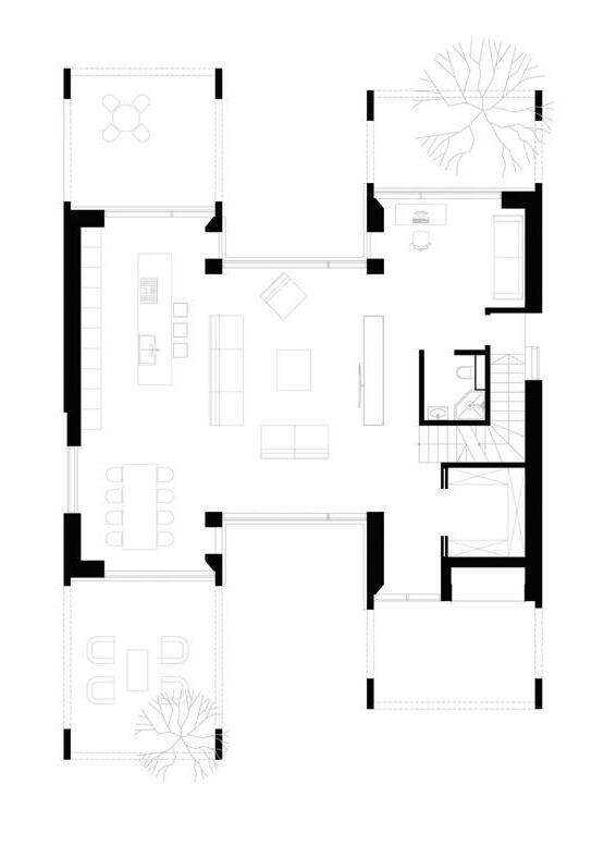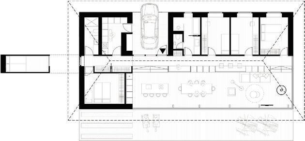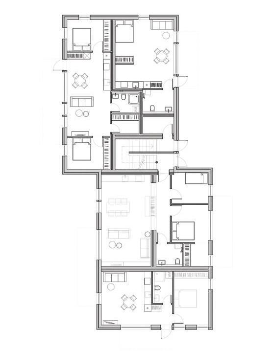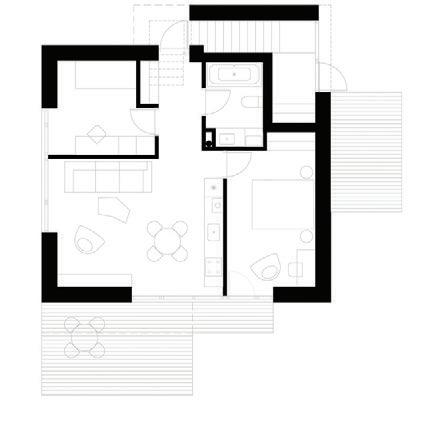 So, to give it meaning, we covered the entire house in large burnt wood boards, resembling a simple burnt-out plank - a symbol of past fire.