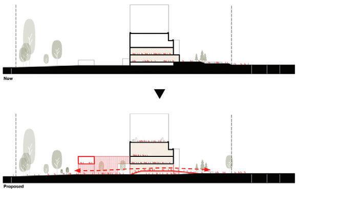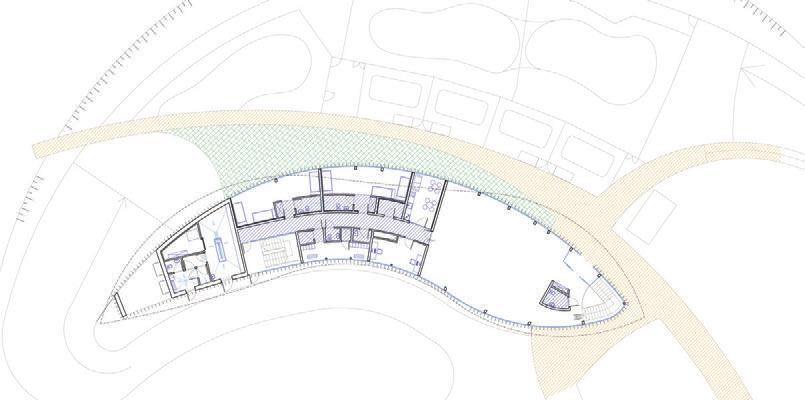 To minimise the visual impact of the new building, a big par t of it is planned as an underground level. The primar y visitor pathway follows the natural contours at ground level, offering views of the seal pools below.