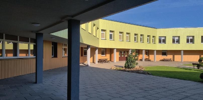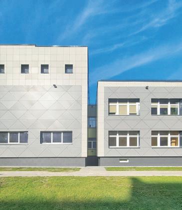 The school building, constructed in 1998 based on a typical design from the Soviet period, has remained unaltered since then. The external walls are insulated with stone wool, and a ventilated facade system with a variety of facade panels in different shades. The exterior facades have a monochrome colour scheme, while the interior courtyard facades feature warm colours such as orange and green. Majority of the existing windows are left unchanged with new external windowsills, flashing elements. New metal ladders on the roof are planned.