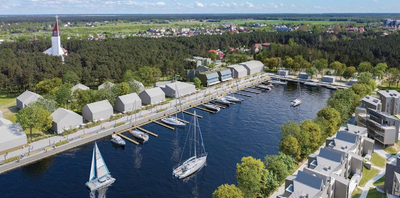 The harbour is a unique place in the territory of Svencele. The development of the small boat harbour will stimulate the active development of water tourism in the Klaipėda region, which is in line with the strategic development plans of the region. The project will integrate Svencelė into the network of other harbours in the Curonian Lagoon. The harbour area will connect the new canal system to the lagoon. The port is designed for visiting ships, with a capacity for moring 50-70 different types of boats. The development of the area is expected to lead to fur ther growth of the settlement and a multifunctional facility in the centre of the harbour - a yacht club building (built by JSC Kopa Vilkui). The object is programmed to become another par t of the harbour with a variety of functions and vibrant life all year round.