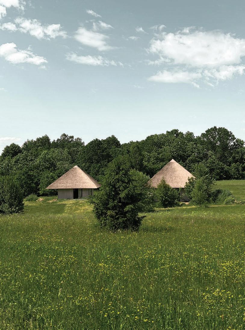 Sauseriai is a modern interpretation of a traditional Lithuanian homestead, located in a very picturesque area of Salantai Regional park. While consisting of vernacular building types, that are common in samogitian homesteads, and using traditional for this area architectural forms and volumes, Sauseriai experiments with unexpected materials combinations: thatched roofs, raw concrete walls, large panoramic windows.