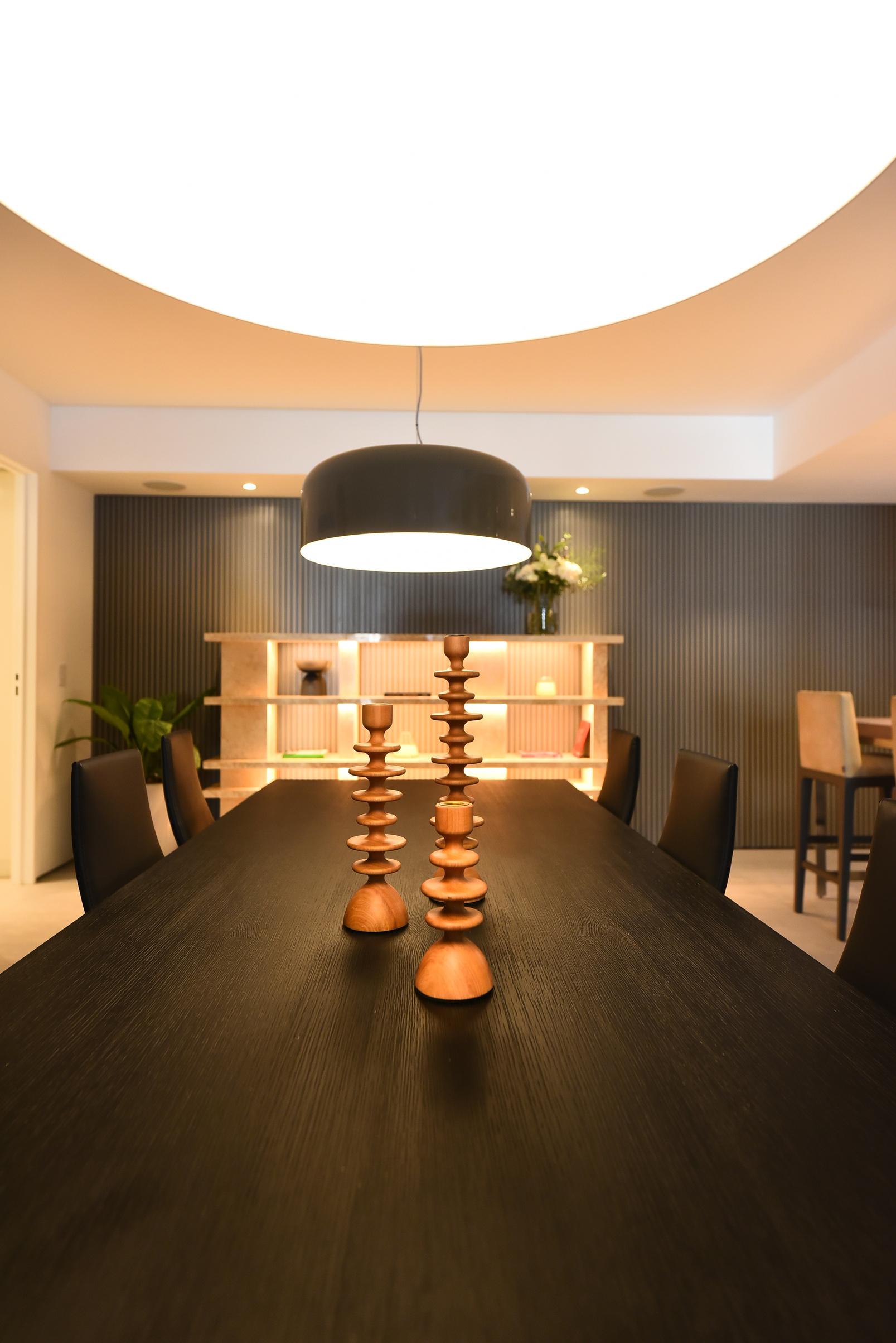 La iluminación también es protagonista. Hicimos una iluminación general que marca los ambientes y después focalizamos algunos sectores de diseño con leds embutidos en muebles para generar distintos climas. En el comedor los protagonistas son los artefactos de pared, que son de una marca internacional, haciendo un efecto muy canchero Y el artefacto colgante sobre la mesa con un efecto puntual sobre la misma
