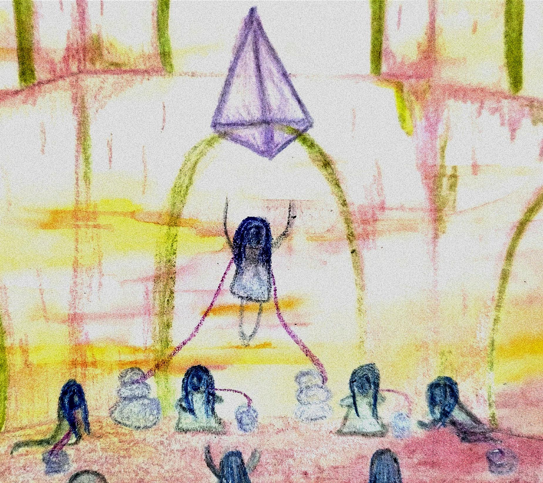 Las miradas abandonaron el suelo para instalarse en los vitrales del techo. La luz interior surgió a la par del último aliento. Tal como lo dictaban las escrituras, la líder se desconectó por unos segundos del tanque para despedir a cada una de las jóvenes con un susurro sobre la frente. Previo al fin de la ceremonia las campanas anunciaron la fuerza del viento, mismo que entró por las puertas y deshizo los cuerpos para reintegrarlos a las alturas.