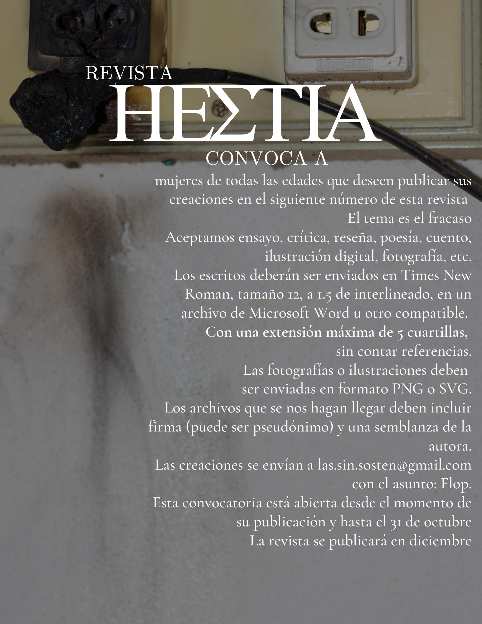 Escribo sobre los días y las formas, convierto recuerdos en vagos movimientos sin sentido que narran la historia de mi vida, todos fragmentados y carentes de significado. Lo cuento sentada sobre la misma silla fría, vistiendo esta ropa sin elásticos ni agujetas, apenas ajustada a la cintura. Pocas veces he tenido la oportunidad de sabotearle el día a los demás con lo incómodo que puede llegar a ser lo que sale de la boca de una chica que jamás habla, pero, en fin, eso es algo que también intento entender. ¿Por qué deboseryoquienrenuncieamirarseenunespejo,autilizarzapatosytenerderechoaunolor propio y no el mismo de lavandería y escuchar más que murmullos y gritos de las demás mujeres azotando las ventanas como viento?