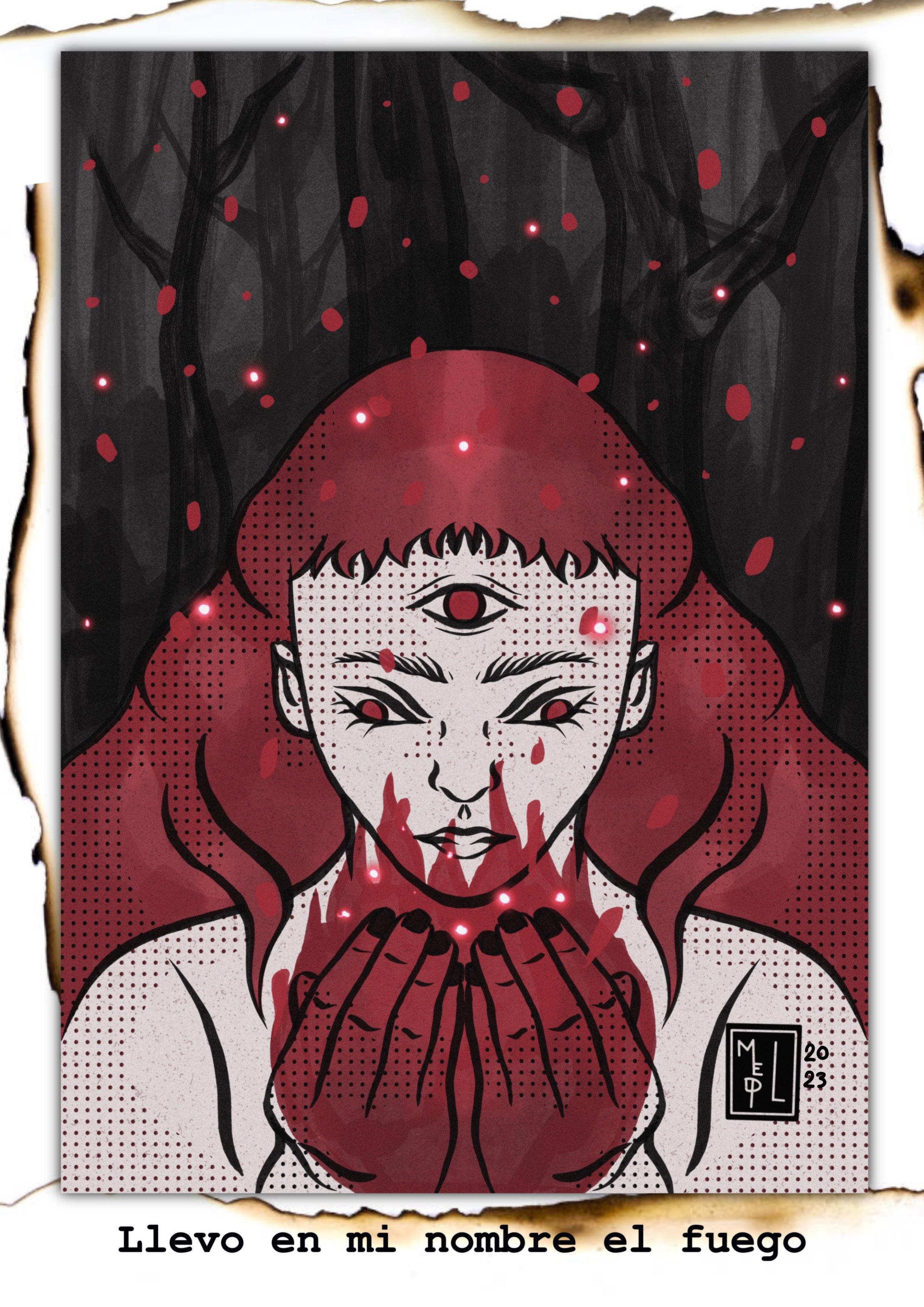 Las ideas aquí expuestas son antorchas que buscan alumbrar nuevos caminos y acercar a las mentes que por aquí paseen sus ojos a repensar su realidad, su entorno y su interior. Que el humo que de aquí se eleve, comunique que, desde el arte, la participación de las mujeres ha sido y es esencial para que los cambios se maquinen dentro y fuera (¿de qué?). El fuego interior se vuelve grito y aquí hay suficiente espacio para arder.