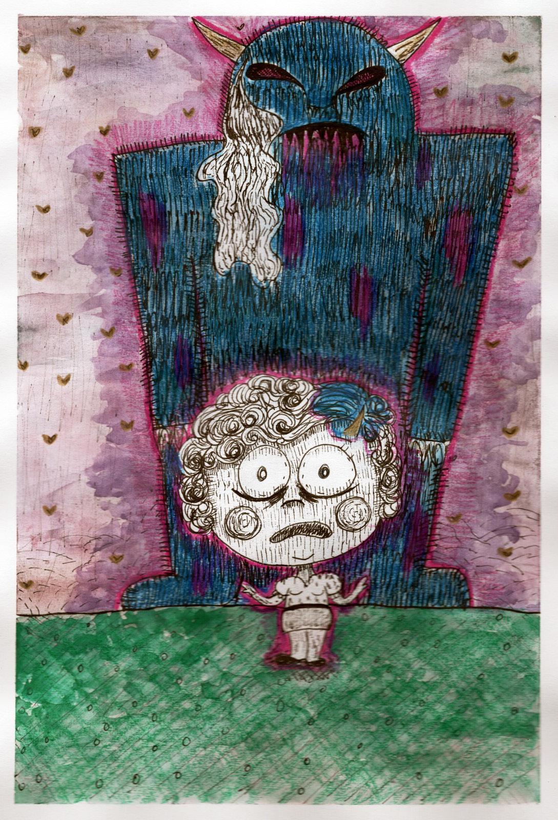 Muchos años han pasado desde entonces y aún tengo problemas para conciliar el sueño y manejar la ansiedad, si tengo un plazo que cumplir o algo que me inquieta en exceso, esto empeora y se hace presente durante mis sueños. Recientemente tuve uno en el que estoy dentro de la casa de mi abuela y mi madre está conmigo, entonces me dice: come algo. Frente a mí aparece un pan relleno de verduras y jamón, empiezo a comerlo y veo que a la mitad de la pieza hay un pedazo de carne crudo. Saco el filete que aún escurre sangre y hago por buscar un sartén para cocerlo, lo pongo en el utensilio, pero no enciendo el fuego, me quedo mirando la sangre del filete y entiendo que puedo comerlo así. Abro los ojos en plena oscuridad, completamente agitada y me sumerjo en mi infierno.