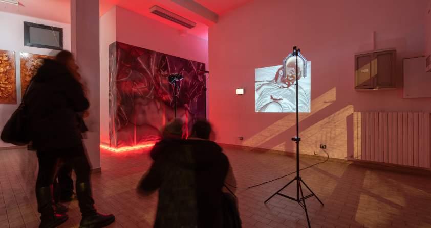 DEFLAGRAZIONE artist’s cu t veste di nuove memorie la precedente mostra. Dal 6 agosto 2018 gli eventi si sono susseguiti e la storia si è stratificata. Questa seconda personale abita un nuovo luogo, quello di Museo Spazio Pubblico, e contiene nuovi attori ed elementi. V. ricorda la vicenda dell’allagamento tramite un