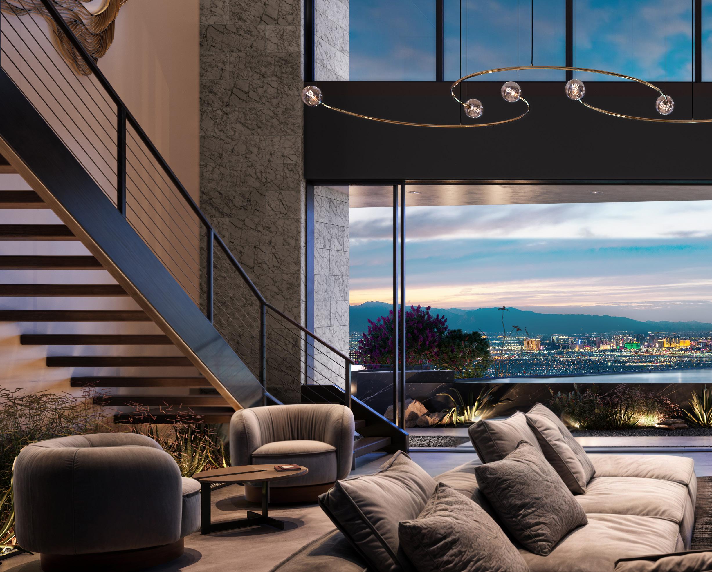 Expansive glass pocket doors showcase stunning views of the Las Vegas Strip and mountains, seamlessly connecting indoor and outdoor spaces for entertaining and relaxing. Nestled in Ascaya, a guard-gated luxury community atop Henderson, offering panoramic views, a serene living environment, and proximity to the Las Vegas Strip and Harry Reid International Airport. Residents enjoy access world-class amenities at the Ascaya Clubhouse, featuring a pool, private cabanas, a tennis and pickleball pavilion, and more. Representing the epitome of luxury living, Blue Heron’s Luminary Collection features unique design, superior construction, and swift delivery.