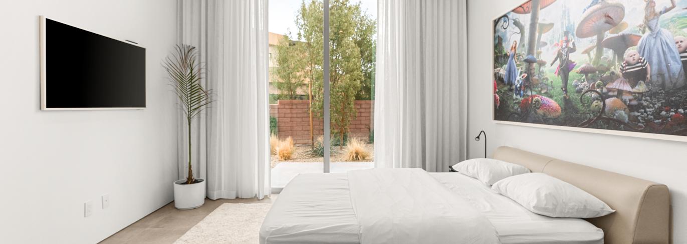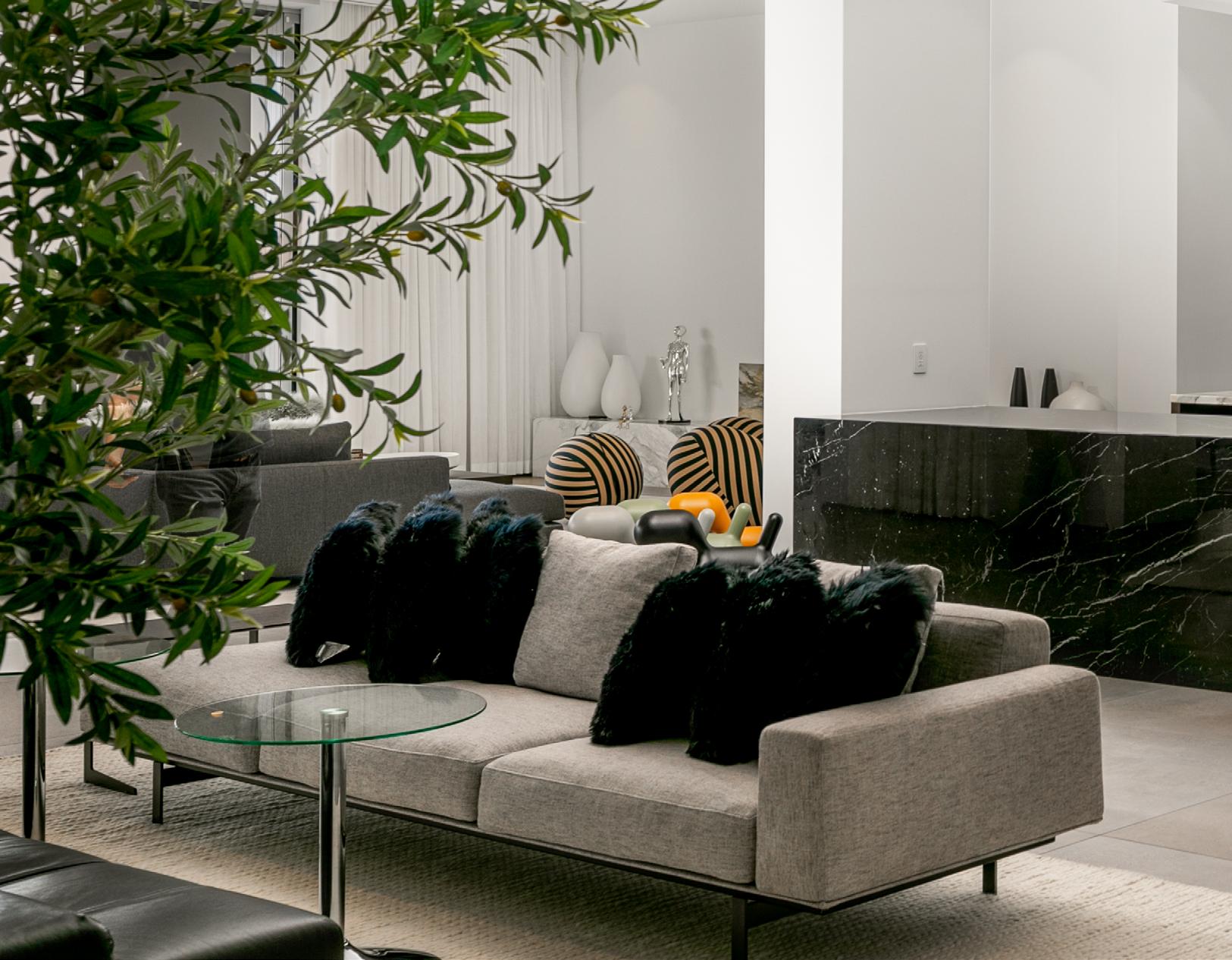 Retreat into the sanctum of the primary suite. Boutique-style closets throughout are meticulously crafted in Italy, further accentuating the home’s singular style.