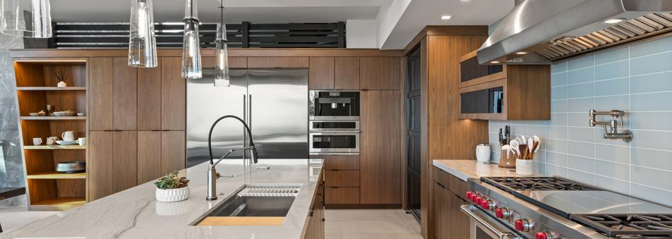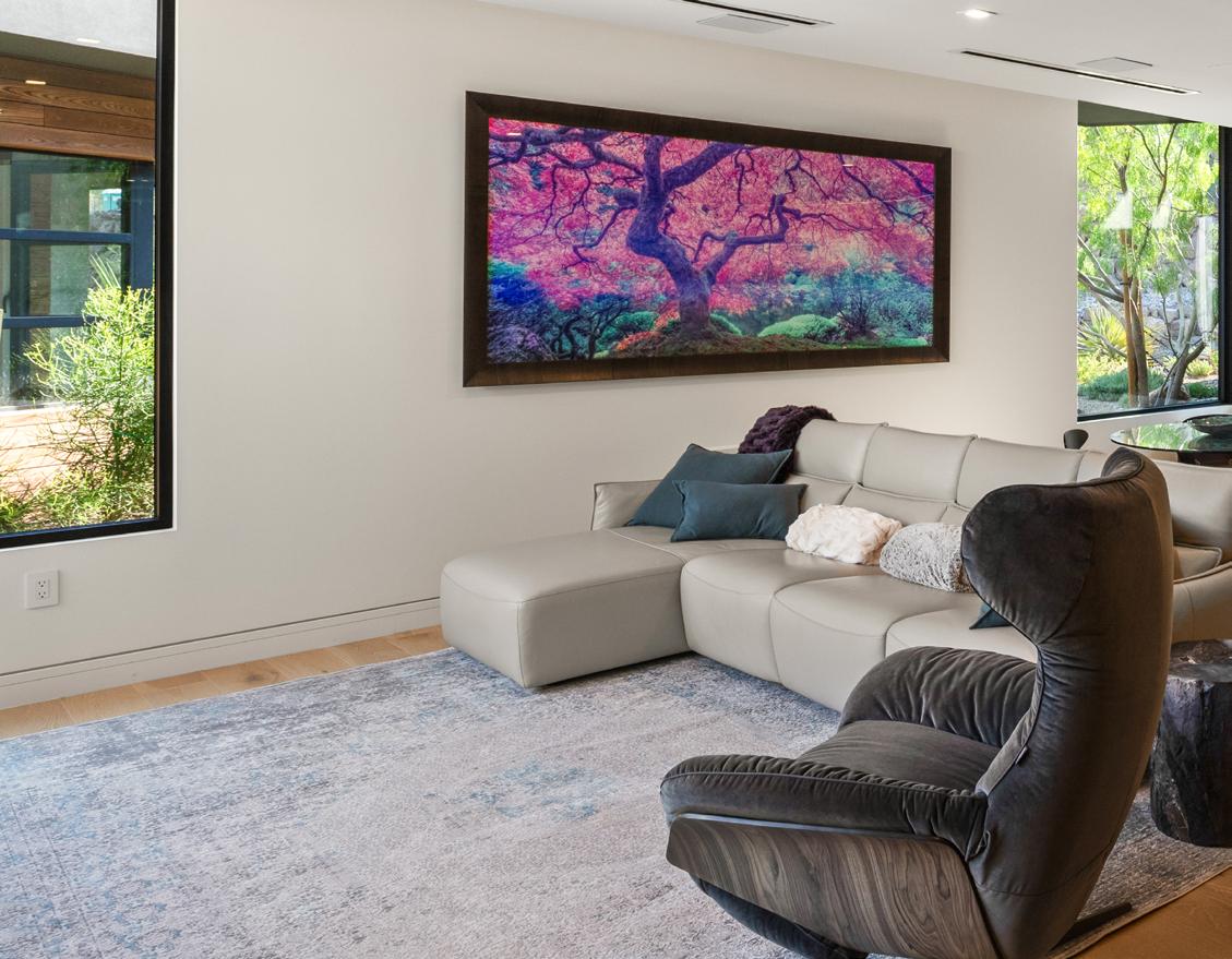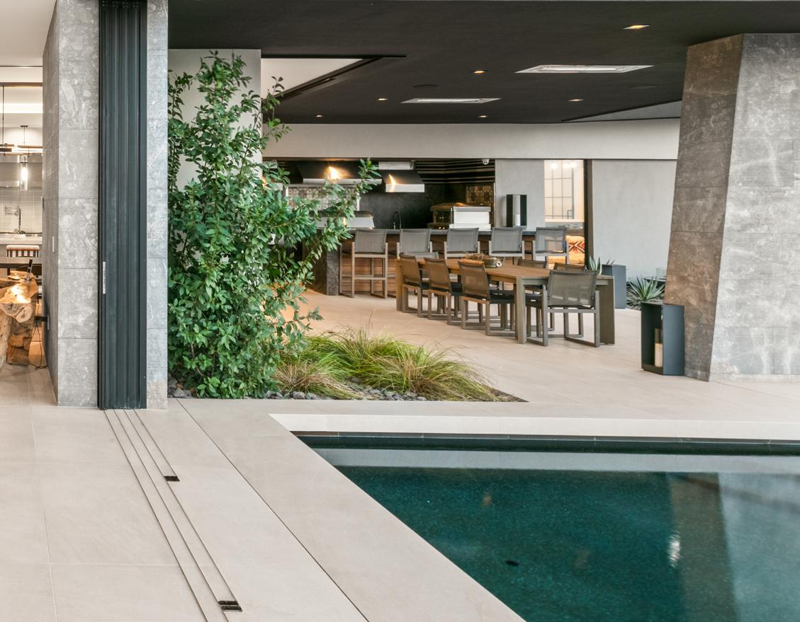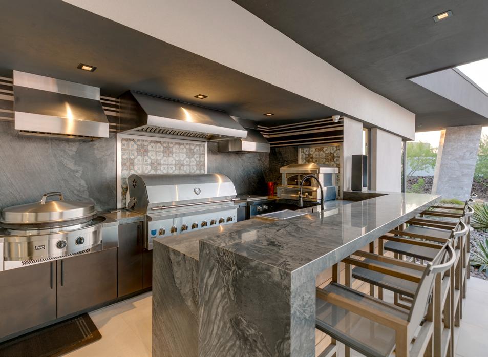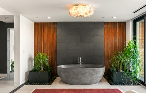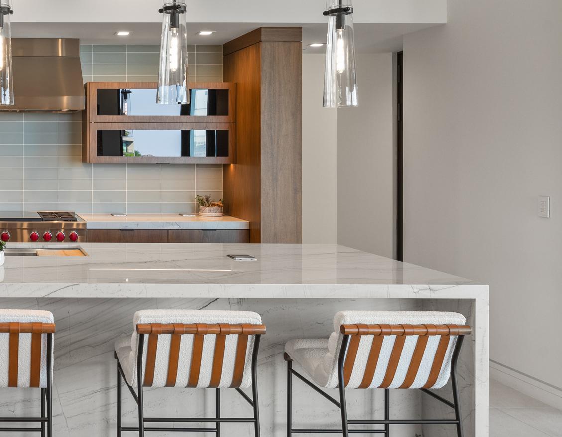 Upon arrival, the home’s dramatic front entrance greets you with striking water and fire features, setting the tone for the remarkable experience that lies within. Inside, the open floor plan is flooded with natural light, highlighting the home’s organic wood and stone elements, adding warmth and balance to its sleek, modern design.
