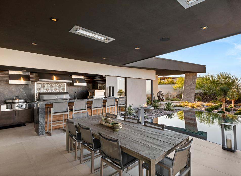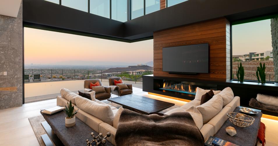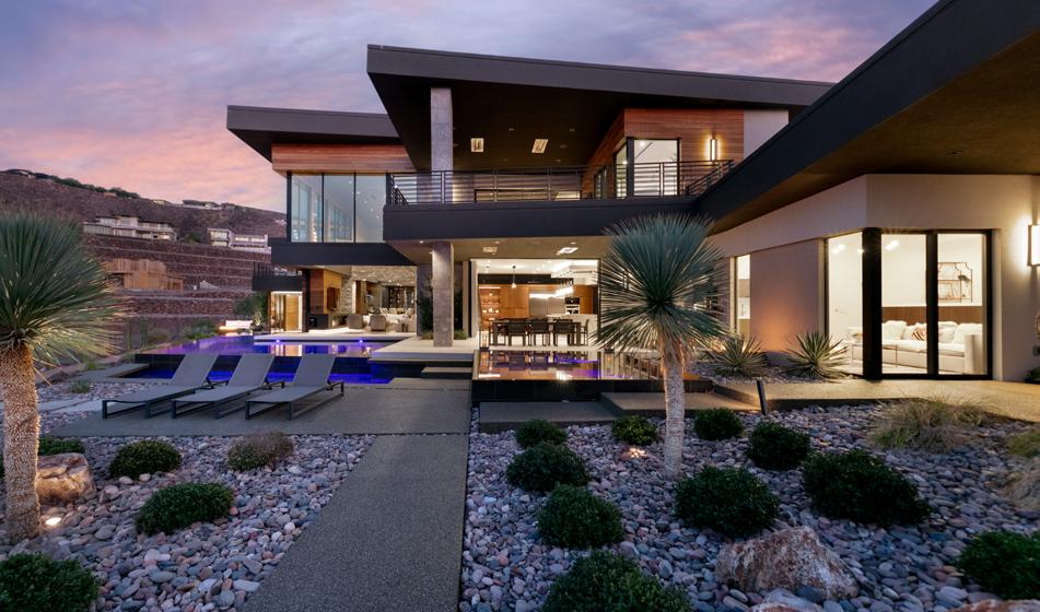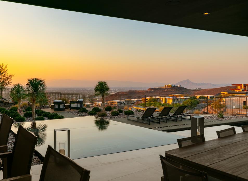 Spanning 8,438 square feet on a 0.75-acre elevated homesite, this architectural gem delivers sensational panoramic views of the iconic Las Vegas Strip from almost every angle. Each space is designed with entertainment and relaxation in mind, creating a seamless flow from indoor to outdoor living.