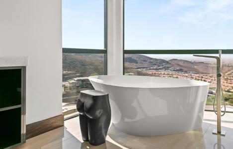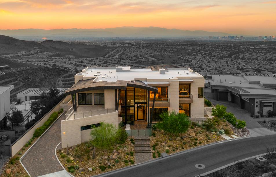 Rare opportunity to own a new contemporary custom home in the guard gated community of Ascaya. The elegant choice of unique materials enhances the distinctive architecture. The focal point of the living room is a dramatic 3D floor to ceiling stone fireplace wall and a wine tower in the open concept plan featuring panoramic Strip and mountain views.