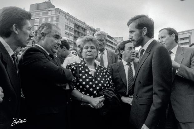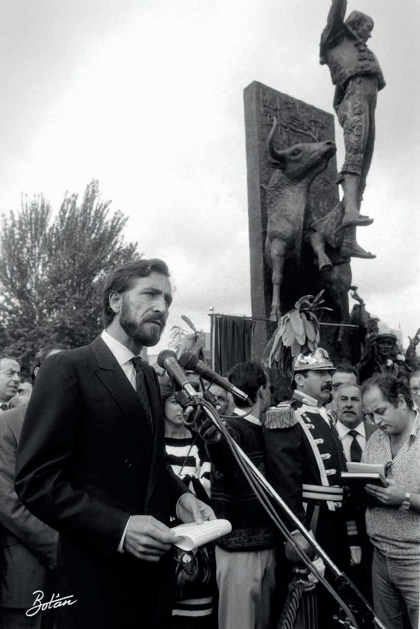 4 de octubre de 1987. Inauguración de Monumento a Yiyo, con Juan Barranco, alcalde de Madrid, y la presencia de los padres y la hermana del torero y el que era su apoderado, Tomás Redondo.