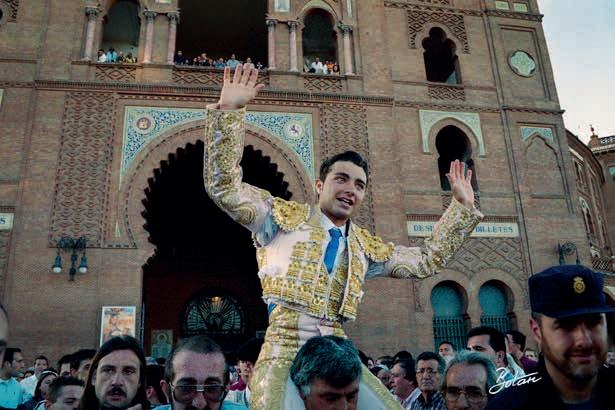 21 de abril de 2002. Fernando Robleño, por la Puerta Grande tras cortar oreja y oreja a un lote de Conde de La Maza.