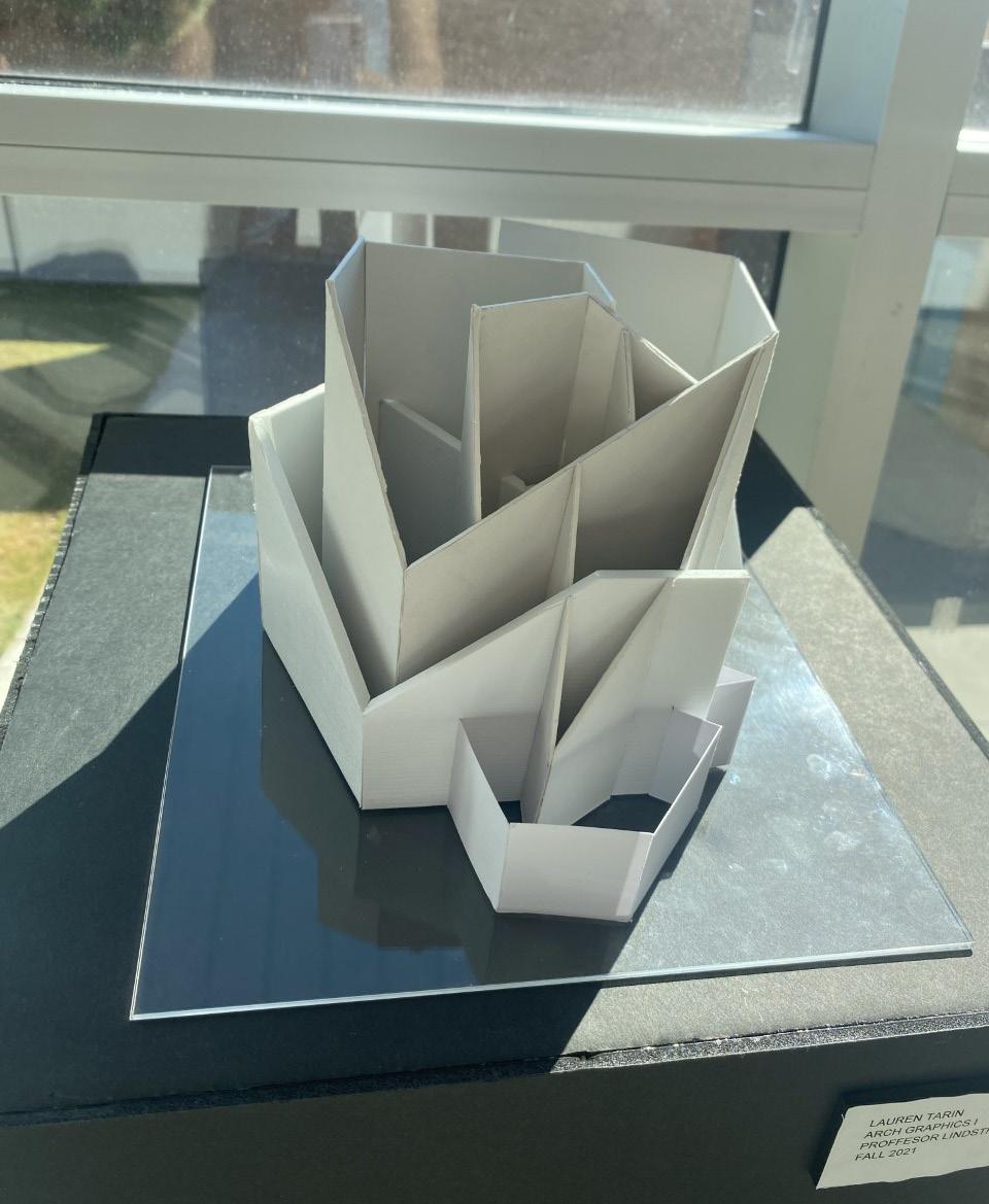 PHASE 3 CONSISTED OF USING OUR SECOND PHASE DRAWING AND TRANSFORMING IT INTO A 3D PIECE WHILE USING DIFFERENT HIGHT SCALE AND MATERIAL THICKNESS