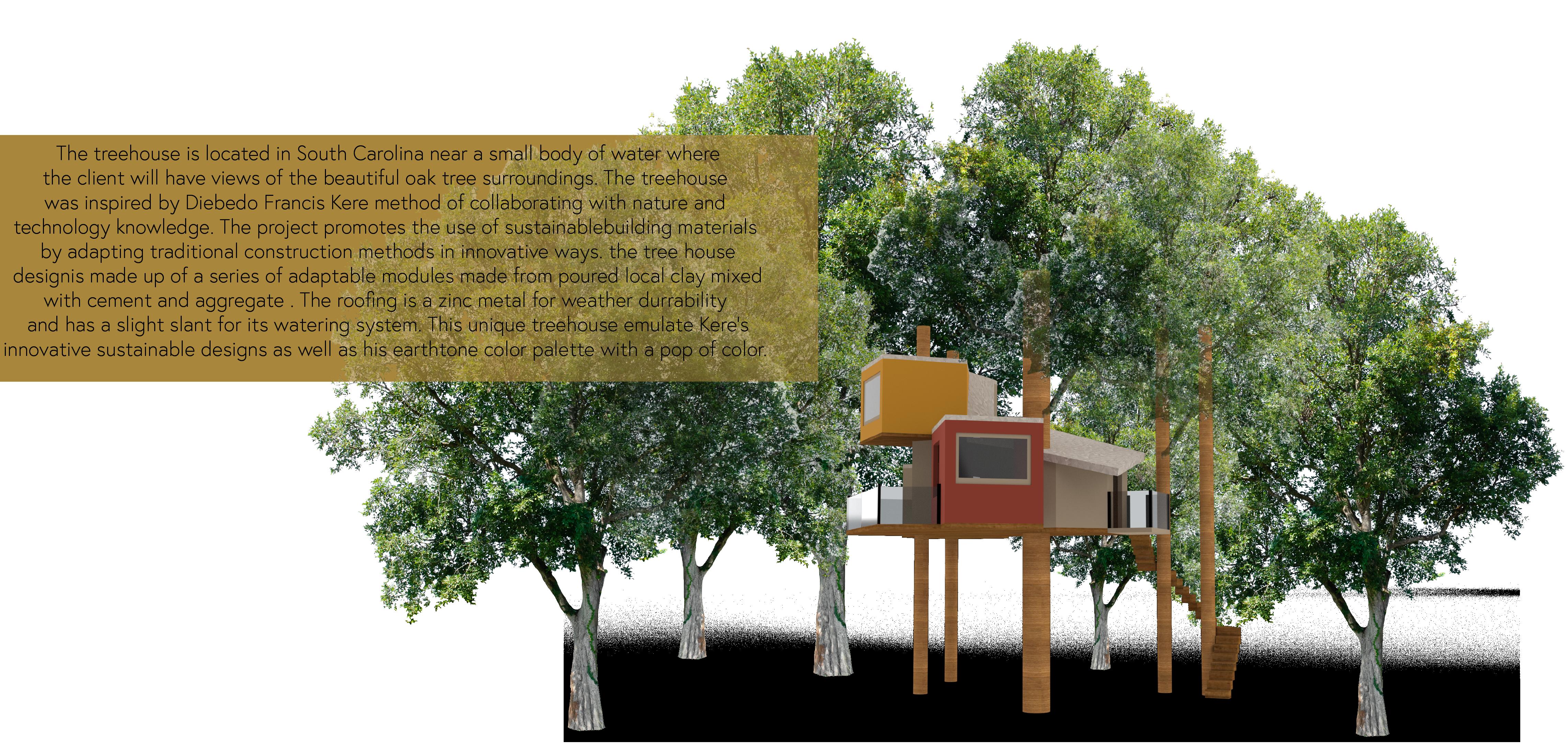 Project aims to creat a tree house based on a Pritzker Prize Architect of choice (Diebedo Francis Kere). The project was to fit the clients request of a “small home” 80 sq/ft each room, with a small book shelf and table. Presentation board was required to have fabricated model of MDF laser cut in 4-6 layers.