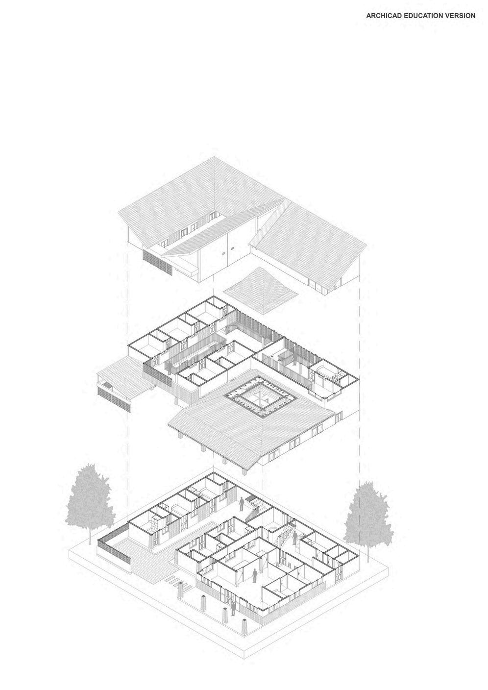 Collaborating with BP2P Jawa III designing the “Bank Desain Klinik Rumah Swadaya”, a selfsupporting house design was produced with a socio-cultural approach to the hierarchy of Joglo house space.