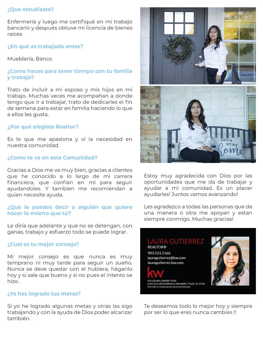 SE HABLA ESPAÑOL 903-258-1646 etins.more@gmail.com 802 W Gentry PKWY, Tyler, Tx 75702 ∙ Auto ∙ Home SR22 ∙ Commercial ∙ Notary DROP OFFS AVAILABLE Come let us professionally prepare and e-file your personal and business tax return. Tax Returns Electronic Filling Business Tax Notary Public 903.258.1646JAIMES INCOME TAX S ERVICES LA TIENDITA MAGAZINE | NOVIEMBRE 2022 15